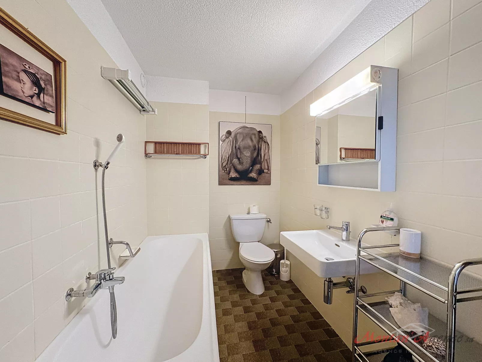 Appartementencomplex "Eden Roc", van 9 verdiepingen. In de plaats, 1.1 km van het centrum van Montana, rustige, zonnige ligging, gebied met weinig verkeer, 50 m van de bosrand, 950 m van het meer, 600 m van het skigebied, aan een doodlopende weg, op het zuiden. In het huis: lift, berging voor ski's, centrale verwarming, wasmachine, droger (voor medegebruik, extra), droogruimte. Parkeerplaats (beperkt aantal). Winkel 1 km, supermarkt 1.2 km, restaurant 1 km, bakkerij 1.3 km, centrum te voet bereikbaar in 5 minuten, bushalte "Résidence Forêt" 300 m, treinstation "Funiculaire Montana Gare" 2 km, meer (zwemmen) "Moubra" 2.3 km. Golfterrein (18 holes) 2.2 km, ski faciliteiten 600 m, ijsbaan 1.2 km. Bekende meren kunnen gemakkelijk worden bereikt: Grenon 950 m, Etang Long 2.3 km. Gratis skibus.