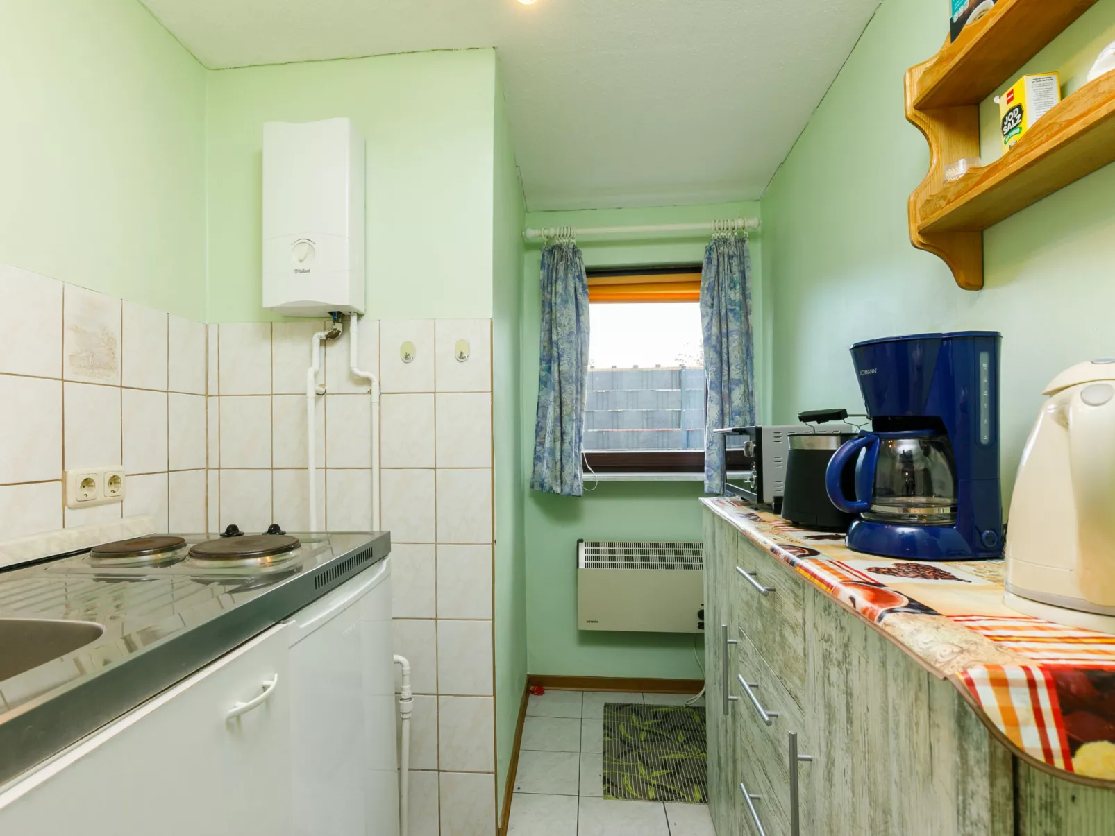 Bungalow 3-kamers 50 m2, op de begane grond. Gezellig ingericht: woon-/eetkamer met Kabel-TV (Flatscreen TV), radio. Uitgang naar het terras. 1 kamer met 1 2-pers bed. 1 kamer met 2 bedden. Kleine kookhoek (2-pits kookplaat, broodrooster, waterkoker, elektrische koffiemachine). Douche/WC. Elektrische verwarming. Terras. Terrasmeubelen. Ter beschikking: kinderstoel, kinderbed. Parkeerplaats (1 Auto) bij het huis. Niet rokers woning. Rookmelders.
