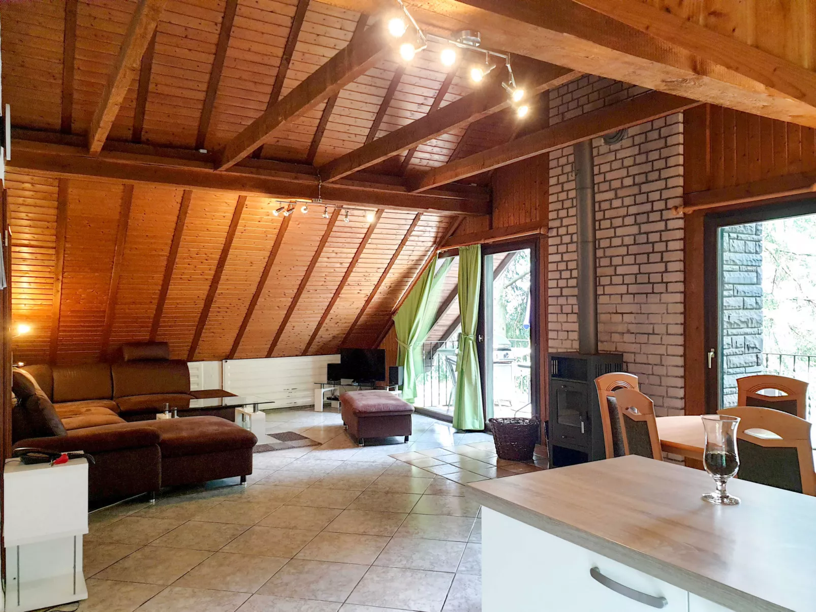 Huis met 3 woningen "Eifelnatur (Haus 1)", omgeven door bomen en velden. Aan de rand van de plaats, 300 m van het centrum, rustige, verhoogde ligging tegen een helling, 10 m van de bosrand, 8 km van het meer, aan een doodlopende weg, te midden van groen. Voor medegebruik: terrein 1.000 m2, verzorgde tuin 450 m2 met gazon 300 m2, bloemen, vijver. Tafeltennis, kinderspeelplaats (glijbaan, schommel, zandbak). In het huis: sauna (extra). Biljart, tafelvoetbal, bergruimte voor fietsen, centrale verwarming, wasmachine (voor medegebruik, extra). Wissel van linnengoed 1 maal per week. Wissel van handdoeken 1 maal per week. Broodjesservice en drankjesservice op verzoek op aanvraag (extra). Trappenweg (25 treden) naar het huis. Levensmiddelenwinkel 5.3 km, supermarkt 5.3 km, winkelcentrum 5 km, restaurant 150 m, bar 3.3 km, bakkerij 5.3 km, café 3.3 km, fietsverhuur 10 km, bushalte "Daun" 10 km, treinstation "Gerolstein" 23 km, openluchtzwembad 7.6 km, overdekt zwembad 10 km, meer (zwemmen) 7.6 km. Golfterrein (18 holes) 15 km, tennis 3.5 km, midgetgolf 7.8 km, manege 10 km, wandelroutes 50 m vanaf het huis. Attracties in de buurt: Vulkanmaare, Vulkanmuseum, Kreuzweg, Strohner Märchen, Wildpark Daun, Adler- und Wolfspark Kasselburg. Bekende meren kunnen gemakkelijk worden bereikt: Pulvermaar 1.5 km. Auto noodzakelijk. De eigenaar accepteert geen jeugdgroepen. Laden en lossen van de baggage is mogelijk bij het huis. De omgeving is gevoelig voor geluidsoverlast. Gelieve geen lawaai te maken en de rust te bewaren.