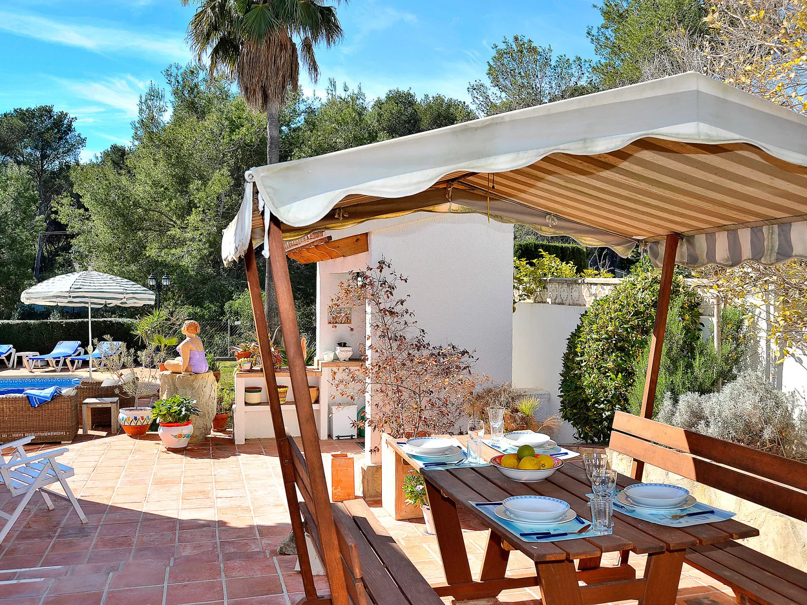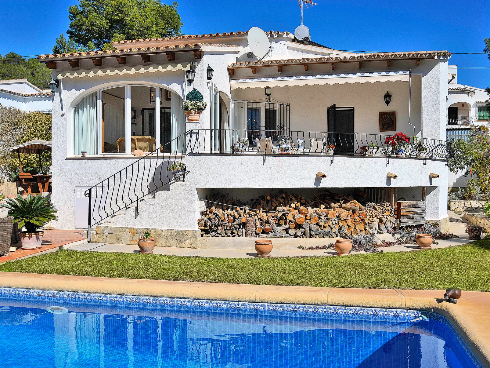Pinar de l'Advocat: Mooi huis "El sueno de Jeanne-Marie". 1 km van het centrum van Moraira, 1 km van zee, 1 km van het strand. Voor alleengebruik: mooie, verzorgde tuin (omheind) met gazon, openluchtzwembad hoekig (4 x 8 m, 120 - 210 cm diepte, seizoensgebonden beschikbaarheid: 01.Jan. - 31.Dec.) met trap. Terras, barbecue. In het huis: centrale verwarming, air-conditioning. Parkeerplaats op het terrein. Winkel 1 km, supermarkt 1 km, restaurant 50 m, bar 1 km, bushalte 1.5 km, zandstrand 1 km. Golfterrein (18 holes) 5 km. Geschikt voor families, geschikt voor senioren. De eigenaar accepteert geen jeugdgroepen.