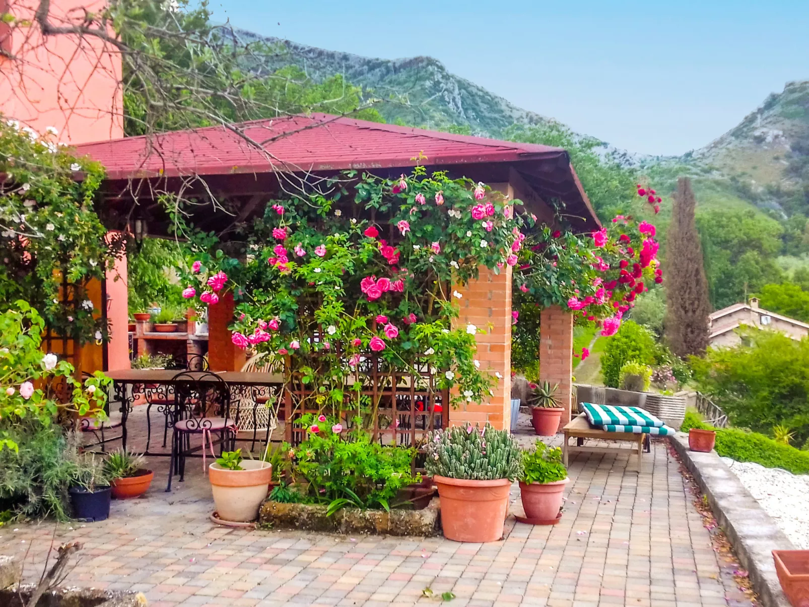 "Farfa", villa 6-kamers 250 m2 op 2 verdiepingen. Open eetkamer. Uitgang naar de tuin, pergola. Open woonkamer met open haard, TV en Flatscreen TV. Uitgang naar de tuin, naar de loggia. Keuken (4-pits kookplaat, oven, afwasmachine, magnetron, diepvriezer, elektrische koffiemachine) met eettafel. Bovenverdieping: 1 2-pers. kamer met douche/bidet/WC. 2 kamers, elke kamer heeft 1 x 2 stapelbedden. 1 2-pers. kamer. 2 douche/bidet/WC's. Verwarming, gas-verwarming (extra). Panoramazicht op het dal. Ter beschikking: wasmachine, strijkijzer, klamboe. Internet (WiFi). Niet rokers woning. IT057063C23T42I23A