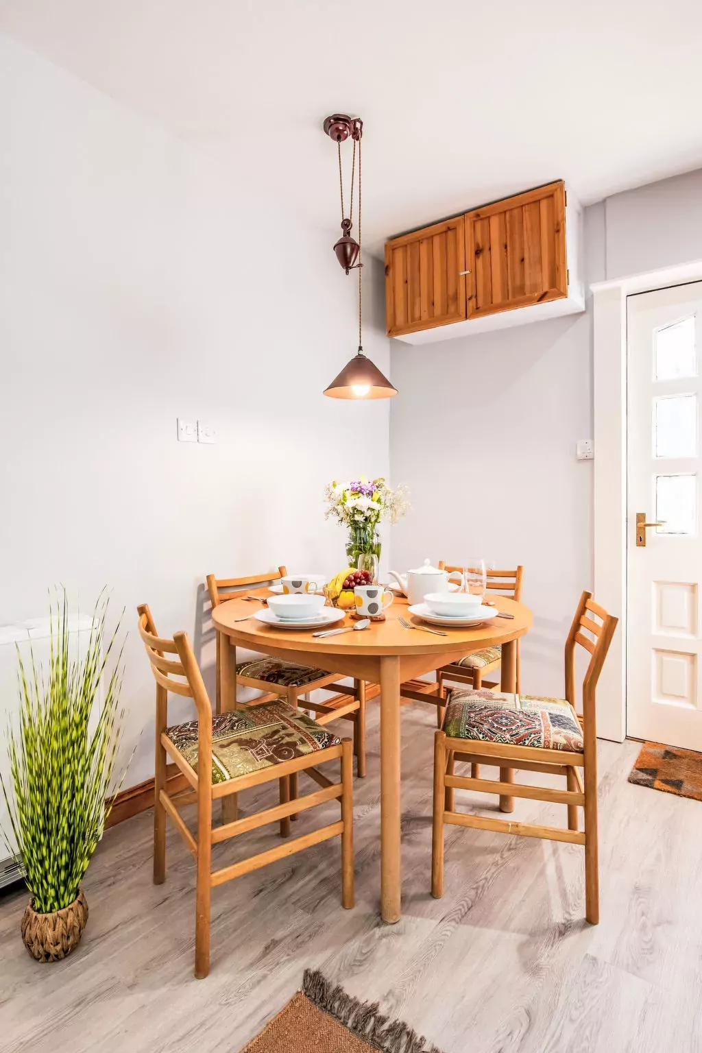 4-kamers cottage. Ruim en licht, smaakvol en stijlvol ingericht: woonkamer met TV (Flatscreen TV), houtkachel. 1 2-pers. kamer met 1 2-pers bed. 1 kamer met 2 bedden. 1 kamer met 1 x 2 stapelbedden. Keuken (oven, afwasmachine, 4 inductiekookplaten, magnetron, grill) met eettafel. Douche/WC. Verwarming. Serre. Mooi uitzicht op het meer en het landschap. Ter beschikking: wasmachine, strijkijzer, kinderstoel, kinderbed tot 2 jaar (extra), haardroger. Internet (Internet (WiFi), gratis). Geschikt voor families.