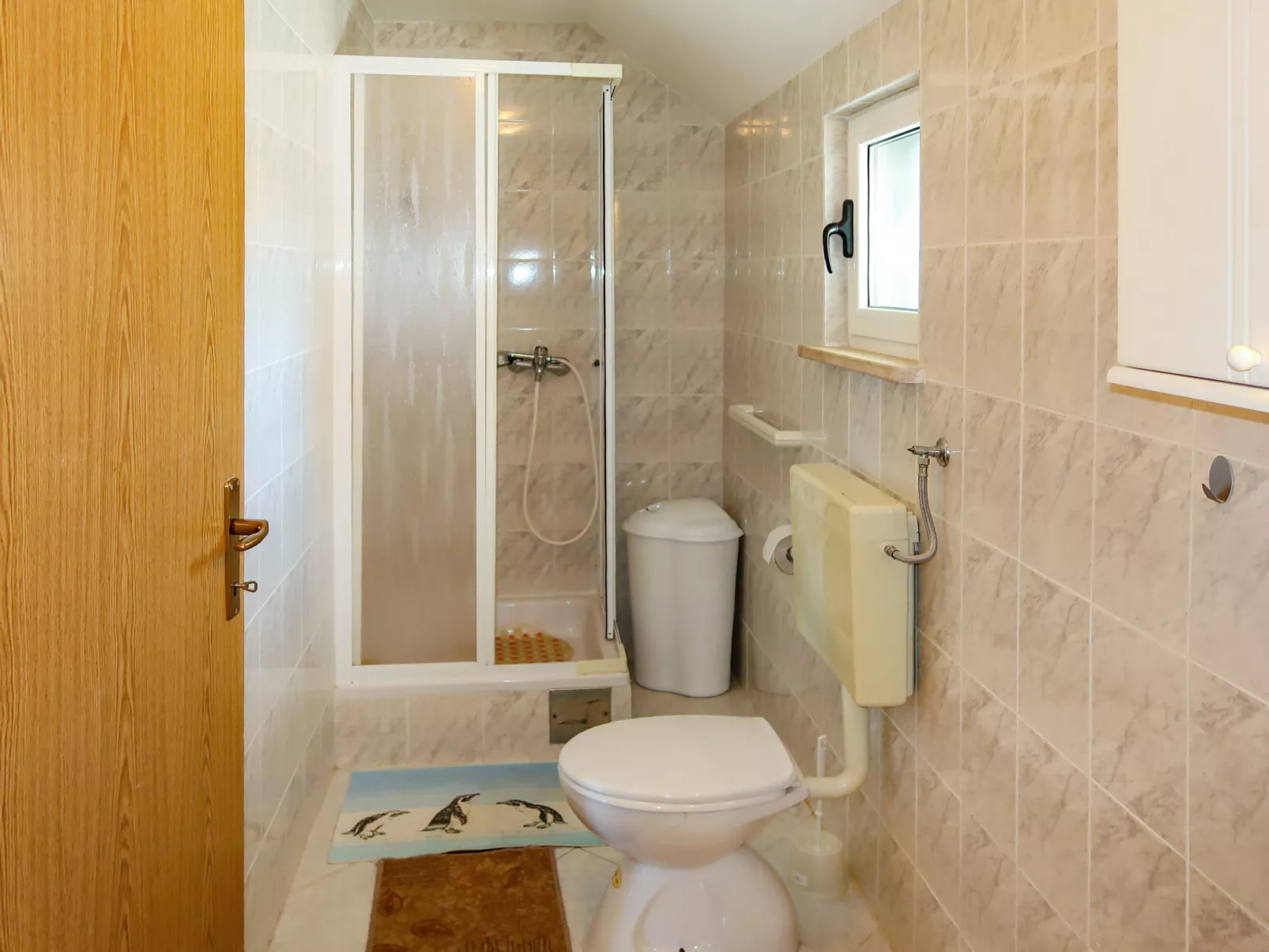 "Filip Jakov", appartement 2-kamers 45 m2 op de 1e verdieping. Woon-/slaapkamer met 1 2-pers bed, eettafel, Sat-TV en air-conditioning. Uitgang naar het balkon. 1 kamer met 1 2-pers bed. Open keuken (2-pits kookplaat, oven, 2 kookpitten (vlammen), broodrooster, waterkoker, diepvriezer, elektrische koffiemachine). Douche/WC. Geen verwarmingsmogelijkheid. Balkon. Balkonmeubilair. Uitzicht op zee. Ter beschikking: wasmachine. Internet (WiFi, gratis). Maximaal 1 huisdier/hond toegestaan. Privé ingang.