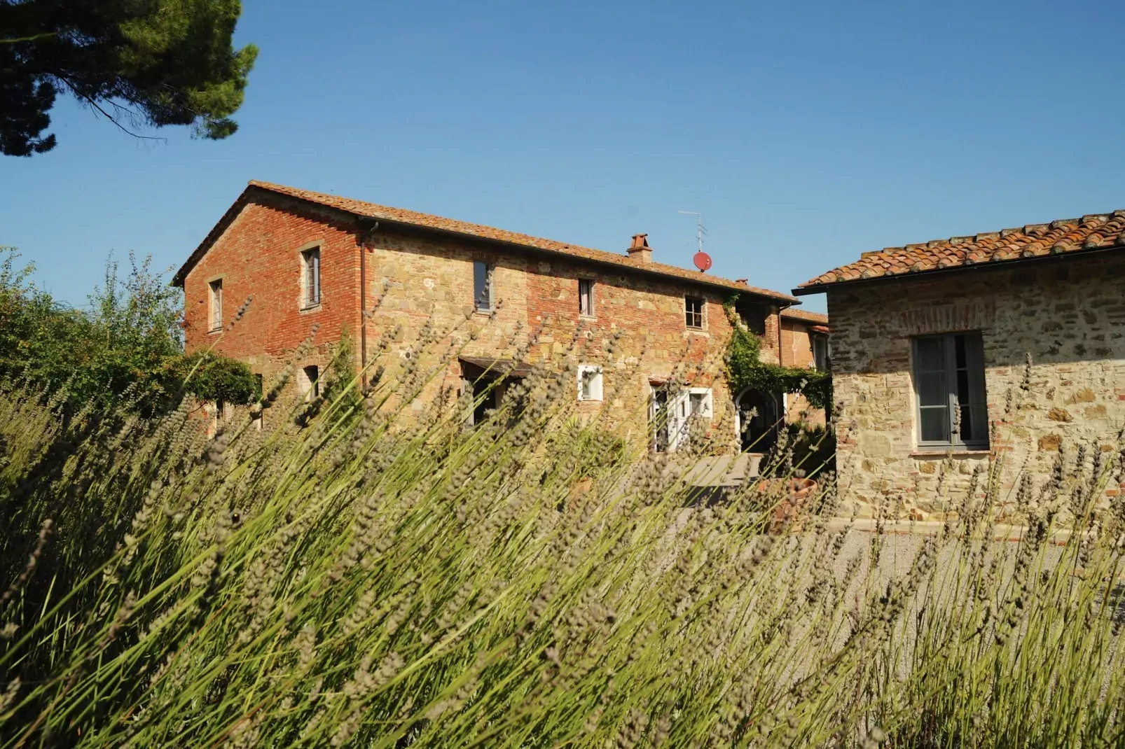 Deze agriturismo ligt tussen Umbrië en Toscane, op het rustige platteland, op slechts 7 km van het meer van Trasimeno. Het pand is omgeven door glooiende heuvels en biedt een prachtig uitzicht op wijngaarden, olijfboomgaarden en lavendelvelden. Met 11 smaakvol ingerichte appartementen biedt het een serene en schilderachtige vakantie in de natuur.