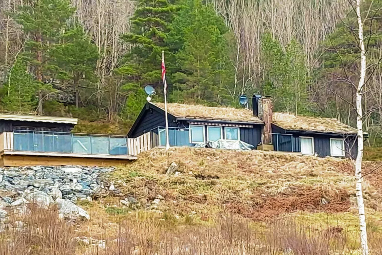 Nach Süden ausgerichtetes Ferienhaus mit Panoramaaussicht zum Wasser! Liegt nur 200 m vom fischreichen Bergsøyfjord entfernt, in dem das ganze Jahr hindurch geangelt werden kann. Die Endreinigung ist hier bereits im Mietpreis inbegriffen! Sie wohnen hier auf einem geschützten Naturgrundstück mit teils überdachter Terrasse. Zur Ausstattung des Hauses gehören auch deutsche TV-Sender über Astra1 sowie WLAN mit 15 MB. Die zwei Einzelbetten können ggf. als Doppelbett genutzt werden. Liege bzw. Daybed im Wohnbereich als Schlafplatz für einen 5. Gast (siehe Foto). Im Außenbereich auch traditioneller Gapahuk sowie Terrassenfläche mit Windschutzelementen aus Glas. Nur 200 m weiter liegt ein schönes, seichtes Badeufer, 300 m weiter einige Felsen zum Baden und Sonnen. Wandern Sie den Kiesweg entlang und genießen Sie die unberührte Natur. Im Sommer und Herbst kann man Beeren und Pilze suchen. Zu mieten: *ein 19 Fuß Boot aus Aluminium mit 50 PS Suzuki Außenborder, Steuerkonsole und Echolot/GPS/Kartenplotter Das Boot liegt 3 km weiter in einem kleinen Bootshafen vertäut. Schwimmwesten sind bei Anmietung des Bootes inklusive. Eigener kleiner Filetierschuppen am Ferienhaus mit Licht und fließend Wasser sowie Platz zur Aufbewahrung der Angelausrüstung. Sehr gutes Angelrevier im Fjord! Einige Feriengäste haben hier 20-25 kg schwere Dorsche an Land gezogen! Zudem fängt man im Fjord auch Lachs und Meerforelle (ausgenommen im Zeitraum 1.3.-1.5.). Da sich hier 3 Fjorde vereinen, ist das Fangrevier besonders lohnend! Angeln Sie auch nach Lachsen und Forellen im Fluss Batnfjordselva, 25 km weiter. Hierfür ist ein Angelschein erforderlich. Es sind 30 km in die Stadt Kristiansund mit vielen Angeboten. Einen 6-Loch Golfplatz findet man etwa 3,5 km vom Ferienhaus. Die Region Nordvestland bietet eine variierte, reizvolle Landschaft zum Aktivsein an der frischen Luft. Zur richtigen Jahreszeit kann man unterwegs viele Beeren und Pilze finden. Zur Stadt Kristiansand sind es 30 km. Besuchen Sie auch die Stadt Molde, das Fischerdorf Bud, das Küstenfort Ergan oder den Atlanterhavsveien, alle in Reichweite für Tagesausflüge.