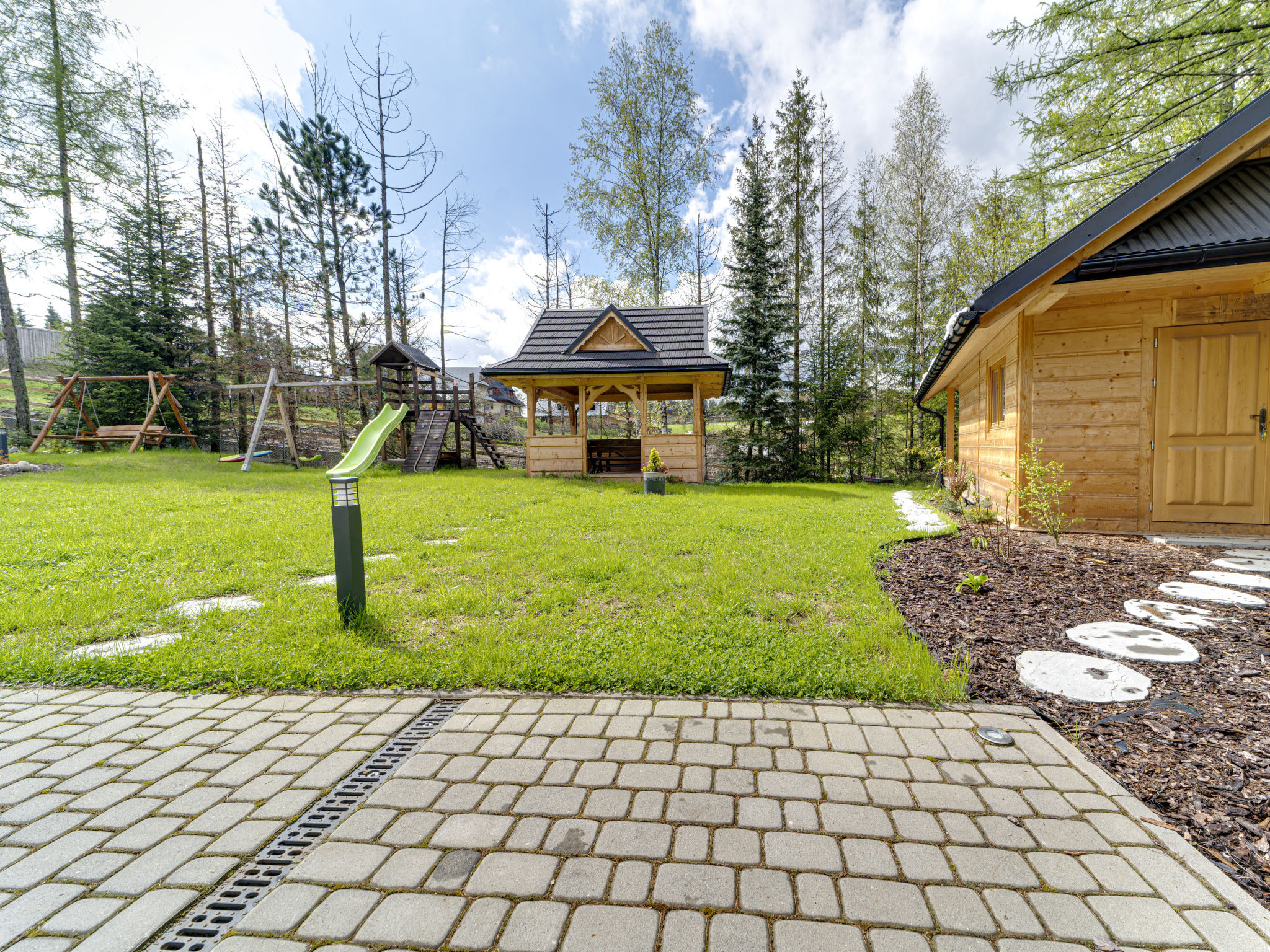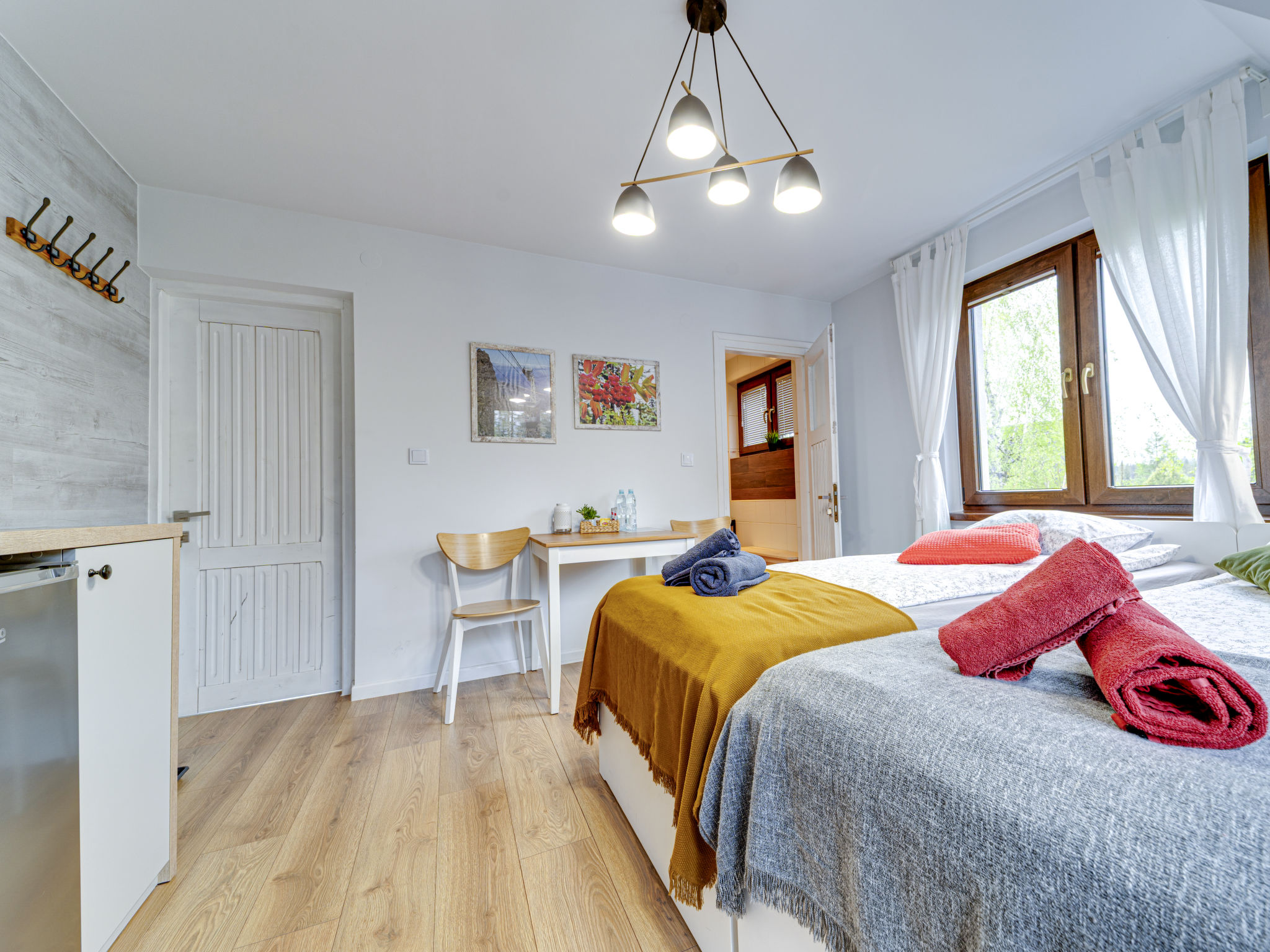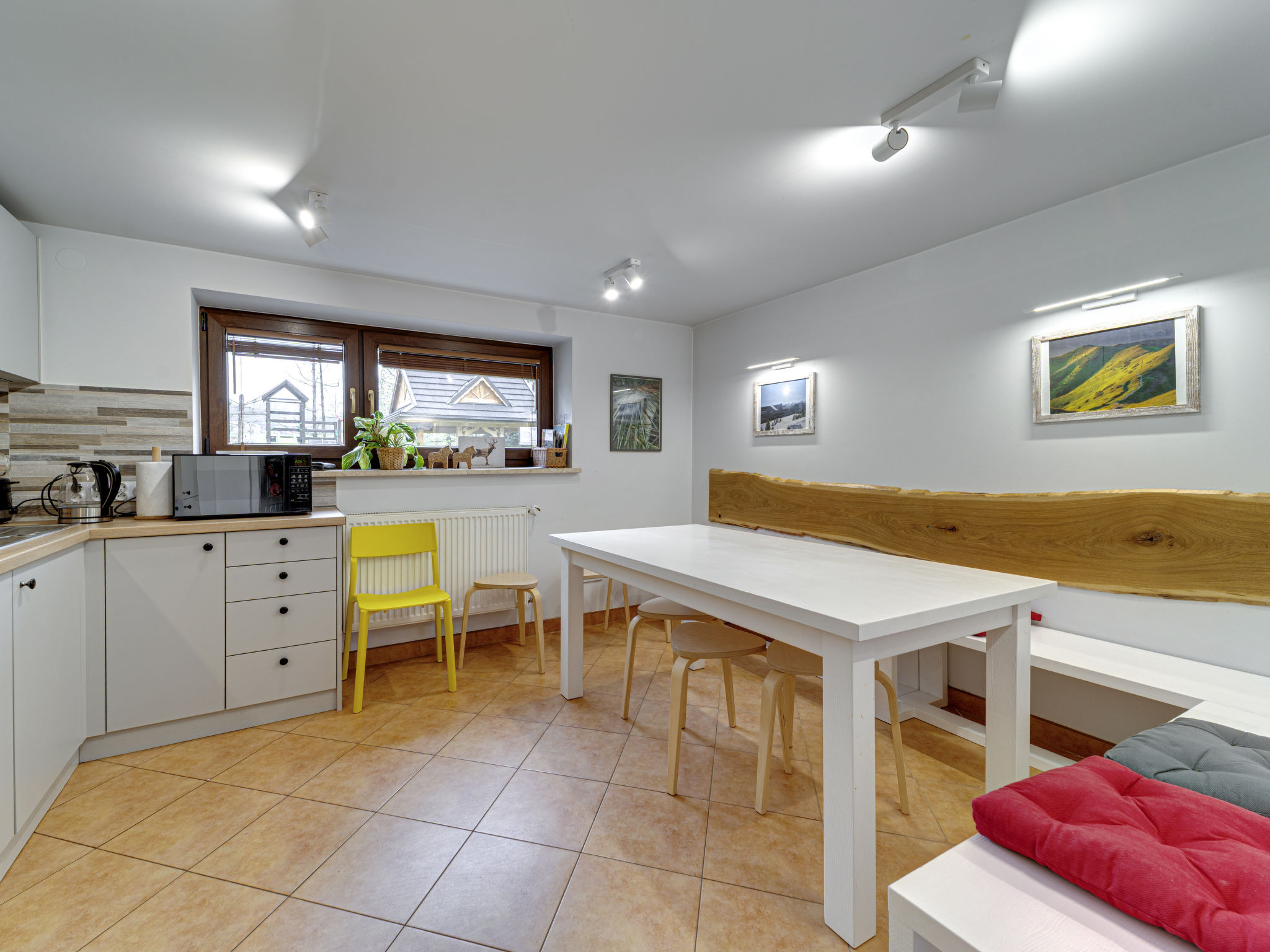 Moderne, gezellig chalet "Gościniec Skorusa", van 3 verdiepingen, bouwjaar 1995, gerenoveerd in 2022. Zonnige ligging, 5500 km van het meer, te midden van groen. Voor alleengebruik: terrein 1.300 m2, tuin 500 m2. Prieel (15 m2), prieel (15 m2), tuinmeubelen, barbecue, grill, kinderspeelplaats (schommel). In het huis: Internet (WiFi), centrale verwarming, alarmsysteem, wasmachine, droger, skischoendroger. Steile toegangsweg. Parkeerplaats (voor 8 auto's) bij het huis. Winkel 2 km, levensmiddelenwinkel 100 m, supermarkt 2 km, restaurant 800 m, bushalte 200 m, treinstation 8 km, kiezelstrand 4.5 km, overdekt zwembad 9 km, baai 5.5 km, strandbad 4.5 km. Tennis 8 km, manege 800 m, kabelbaan 9 km, skilift 4 km, ijsbaan 9 km. Attracties in de buurt: Tatra National Park 600 m, Polana Strążyska 4.8 km, Zjeżdżalnia grawitacyjna 5 km. Bekende skigebieden kunnen gemakkelijk worden bereikt: Chotarz 2.5 km, Polana Butowy Wierch 4 km, Zakopane 7 km.
