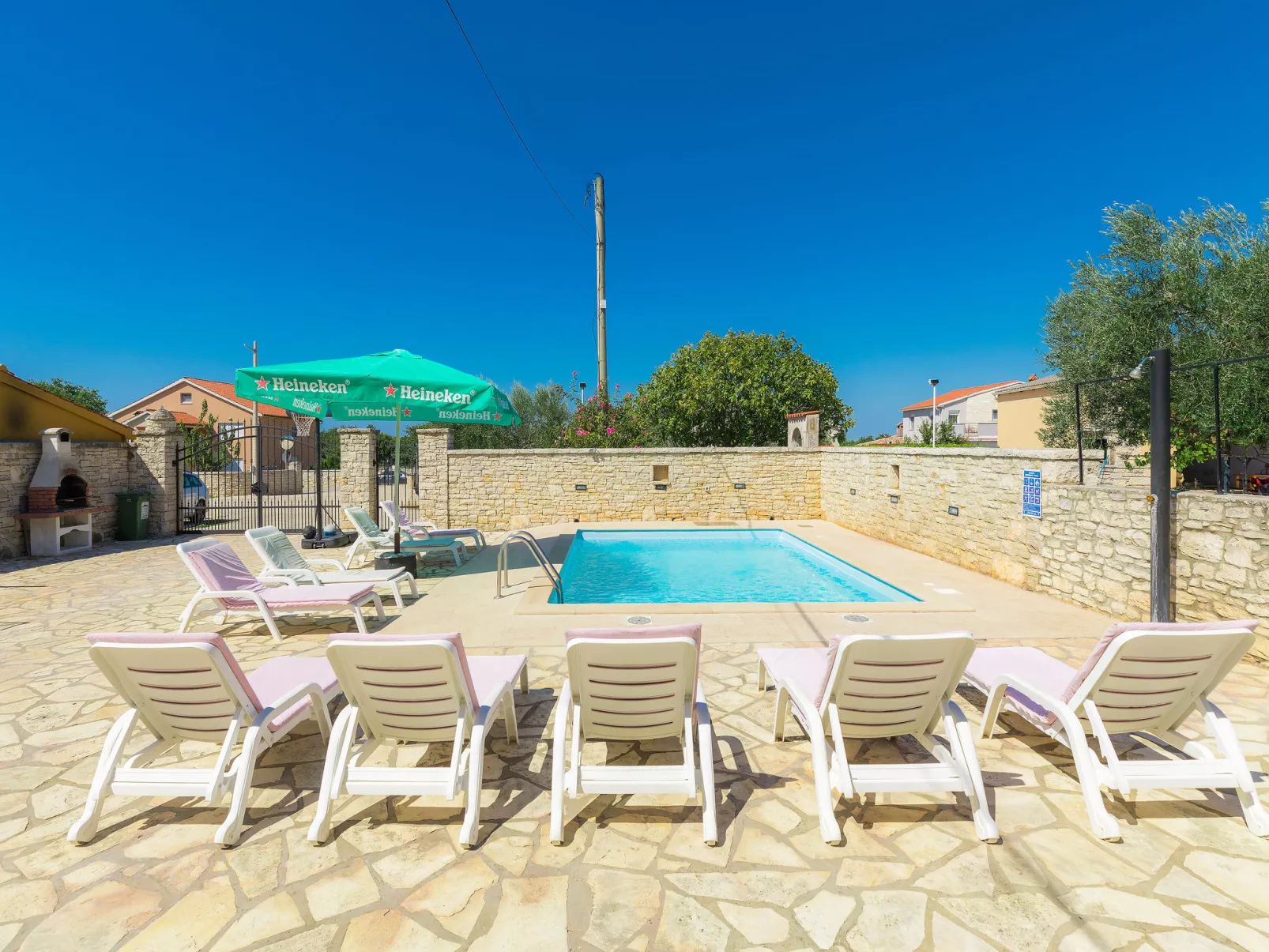 Golubovo 8 km van Vodnjan: Rijtjeshuis "Gracije", van 3 verdiepingen. In een woonwijk, 4 km van zee, 4 km van het strand. Voor alleengebruik: terrein 250 m2 (omheind), openluchtzwembad hoekig (24 m2, 140 cm diepte, seizoensgebonden beschikbaarheid: 15.Apr. - 15.Okt.). Buitendouche, tafeltennis, basketbal, barbecue. In het huis: internetaansluiting, sauna, tafelvoetbal, centrale verwarming, wasmachine. Parkeerplaats (voor 4 auto's) bij het huis. Winkel 3 km, supermarkt 8 km, restaurant 3 km, bushalte 3.6 km, kiezelstrand 4 km, rotsstrand 4 km. Geschikt voor families. Vliegveld 15 km van het huis. Groepen jongeren zijn niet toegestaan. De unit bestaat uit 3 appartementen, verhuurd als een eenheid. Elk appartement met externe en aparte ingang.