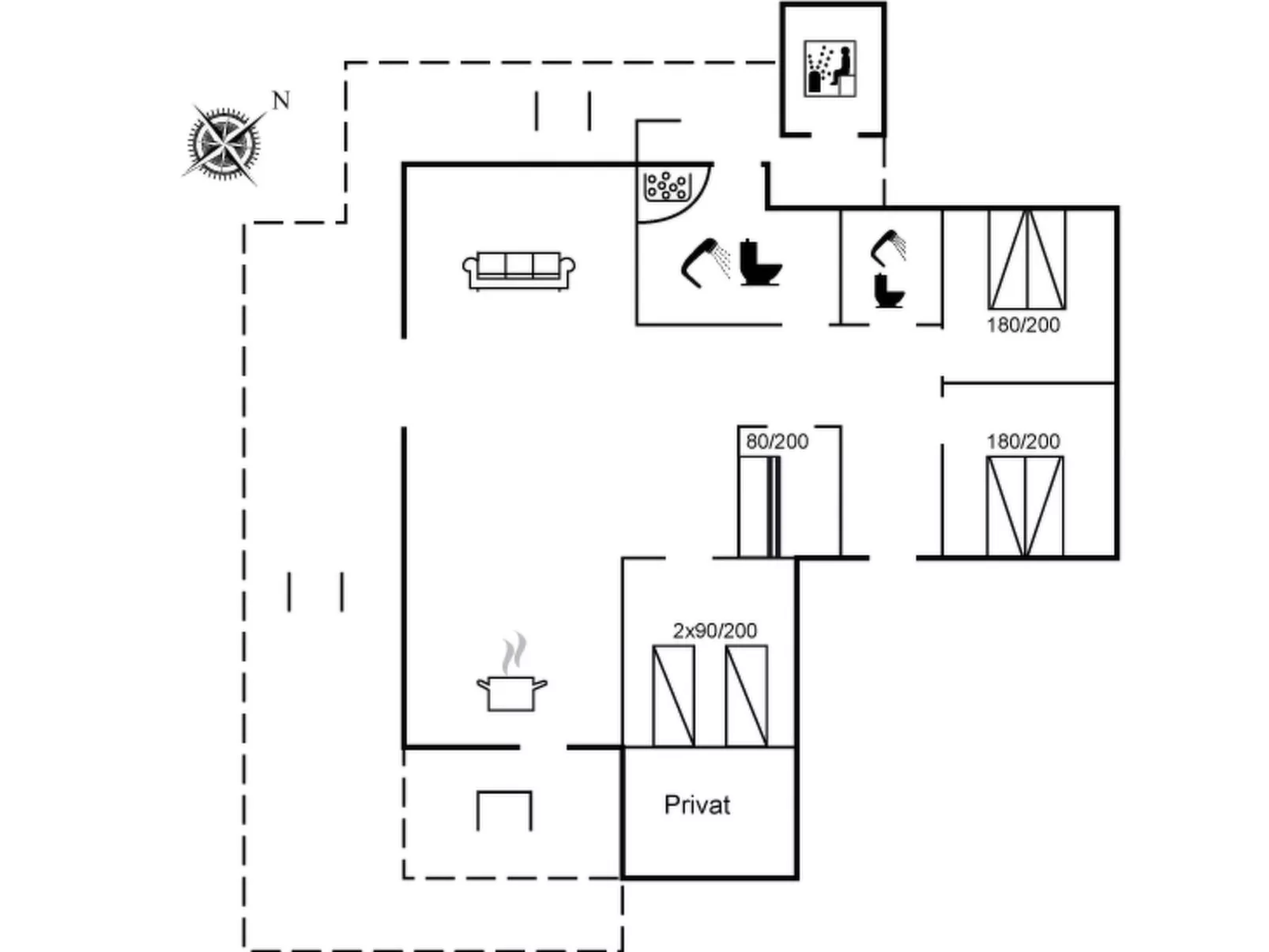 Eengezinswoning, bouwjaar 2022. 150 m van zee. Voor alleengebruik: wild terrein 1.200 m2. Buitendouche, barbecue. In het huis: wasmachine. Parkeerplaats bij het huis. Levensmiddelenwinkel 2.7 km. Golfterrein 5 km. De eigenaar accepteert geen jeugdgroepen.