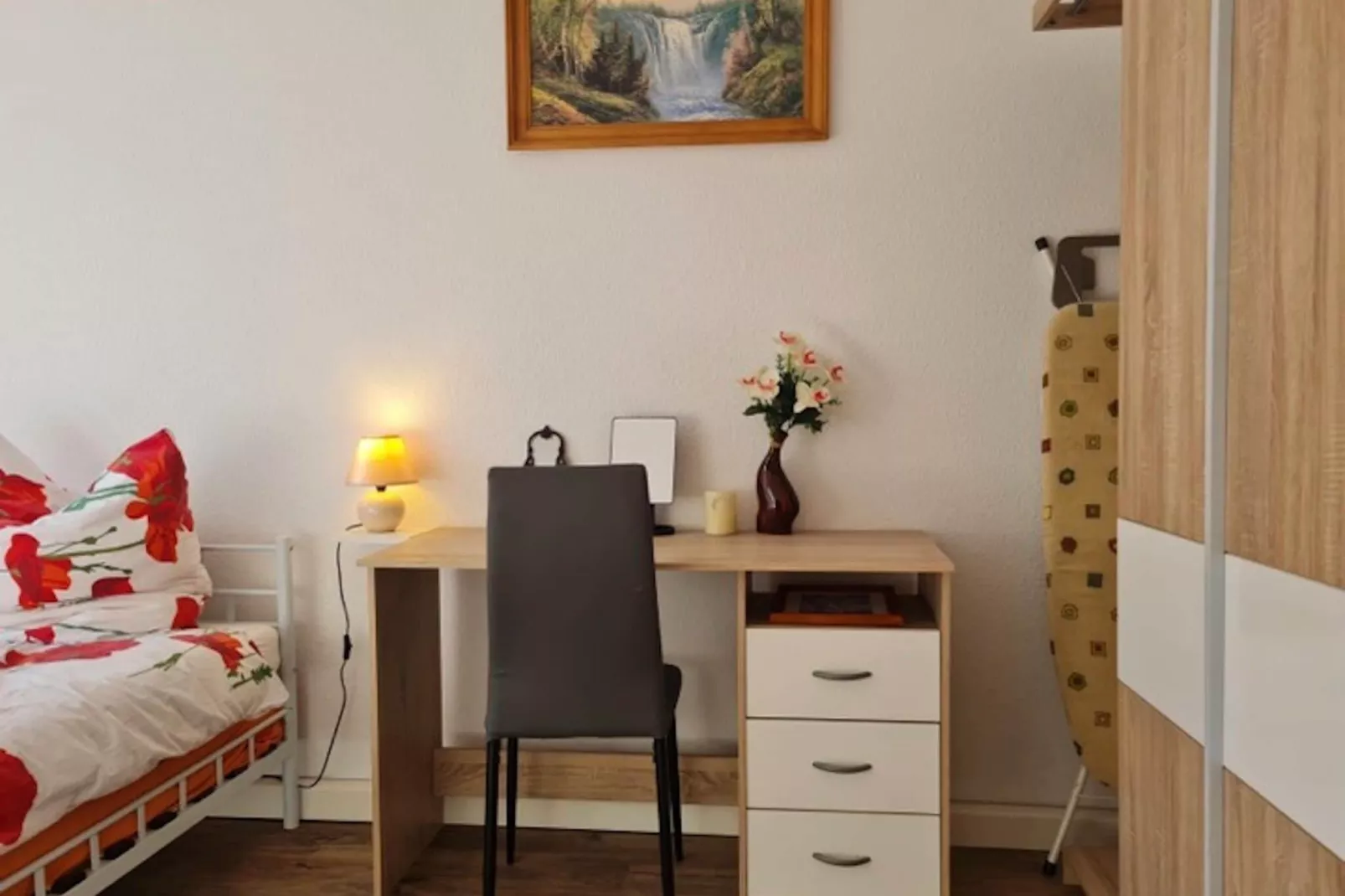 Dit gezellige appartement op de tweede verdieping ligt op slechts 2,9 km van het centrum van Zwickau en biedt praktisch comfort voor individuele reizigers, stellen of kleine groepen. De woonruimte is voorzien van een eenpersoons slaapbank en een flatscreen-tv, terwijl de keuken – uitgerust met een elektrische kookplaat met twee pitten, magnetron, koel-/vriescombinatie, koffiezetapparaat met capsules, broodrooster, waterkoker en eettafel voor vier personen – een eenvoudige maaltijd mogelijk maakt. De slaapkamer beschikt over een tweepersoonsbed en de badkamer is voorzien van een bad met douche, toilet, wastafel en föhn.