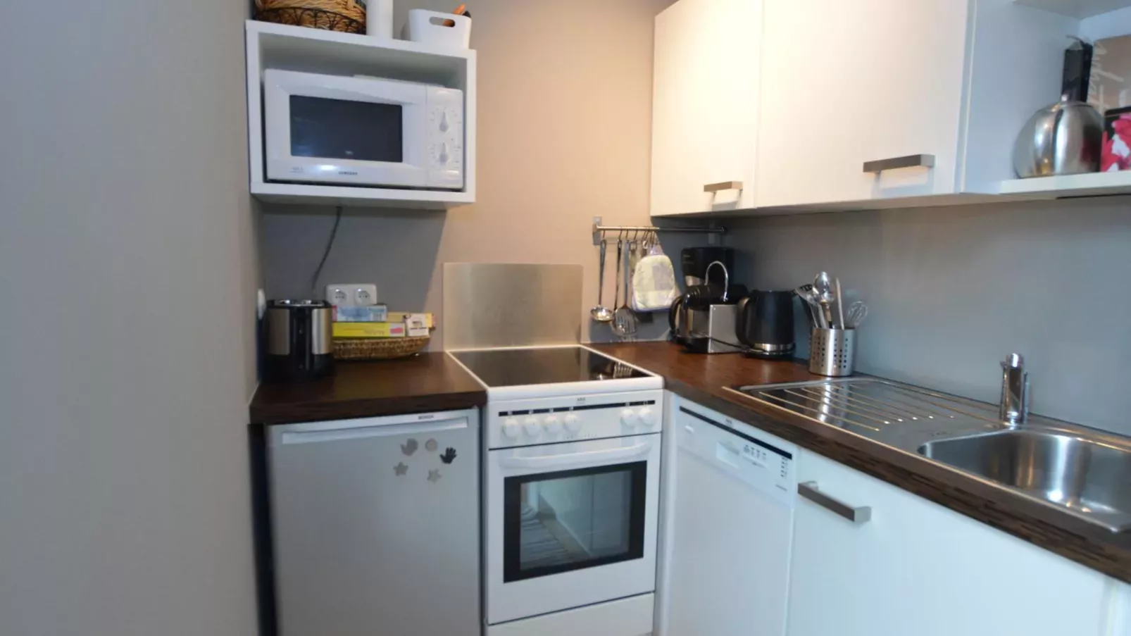 1 slaapkamer is ingericht met een luxe 2-persoons slaapbank en een televisie. De andere slaapkamer heeft een twee persoons bed. Ideaal dus voor 2 tot 4 personen. Met leuke assecoires is de woonkamer met open keuken zeer gezellig en sfeervol ingericht
