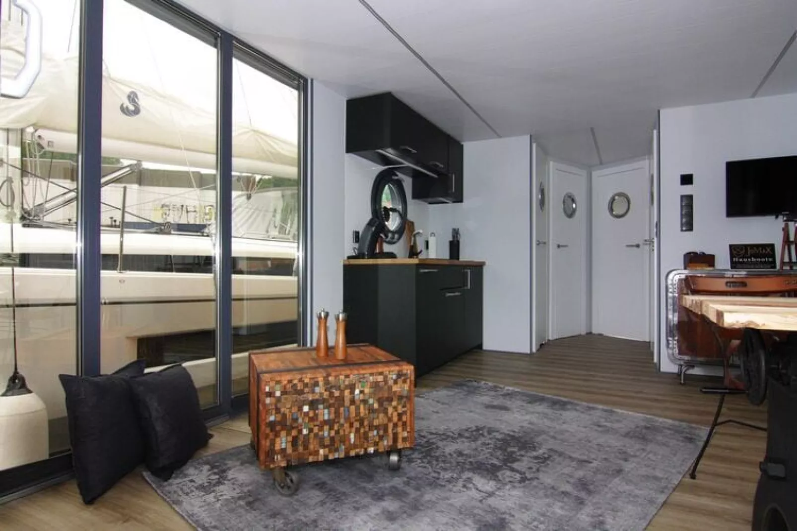 Een drijvend vakantiehuis met een bijzondere charme: deze moderne en smaakvol ingerichte woonboot ligt aangemeerd in de haven van de historische zeevaart- en havenstad Flensburg. Geniet van een panoramisch uitzicht over het water en de haven terwijl u geniet van uw ontbijt op het terras. Het dakterras is een heerlijke plek om te ontspannen in de stralende zon. De woonboot zelf maakt indruk met zijn lichte interieur en royale voorzieningen. Vlakbij vindt u de levendige zeilhaven en een beroemde curryworstkraam genaamd Piratennest. Na een wandeling door de prachtige oude stad of een rondvaart op een passagiersboot, sluit u de dag comfortabel af op de bank van uw woonboot en geniet u van de zonsondergang aan de horizon.