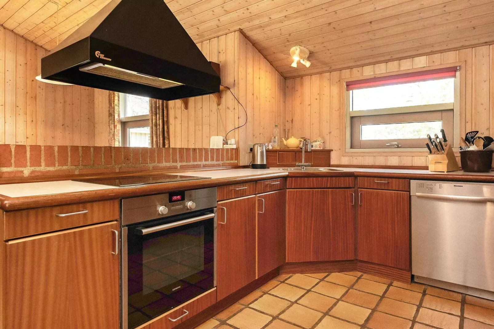 Praktisch eingerichtetes Ferienhaus auf einem hügeligen Naturgrundstück mit kurzer Entfernung zum nächsten Strandufer. Das Ferienhaus lädt Sie auch außerhalb der Sommersaison zu einem entspannten und erholsamen Urlaub ein, da es sowohl mit einer 5-Personen-Sauna als auch einem 2-Personen-Whirlpool ausgestattet ist. An kühleren Abenden sorgt ein Holzofen für wohlige Wärme. Außen offene Südterrasse sowie überdachte Terrasse im Osten. Auch von den Schlafzimmern aus haben Sie Zugang zu einer Terrasse. Das Ferienhaus liegt in einer attraktiven Gegend. Ein guter Ausgangspunkt für interessante Ausflüge in ganz Ostjütland, z.B. nach Hobro mit dem Wikingerzentrum Fyrkat. Keine Vermietung an Jugendgruppen erwünscht!