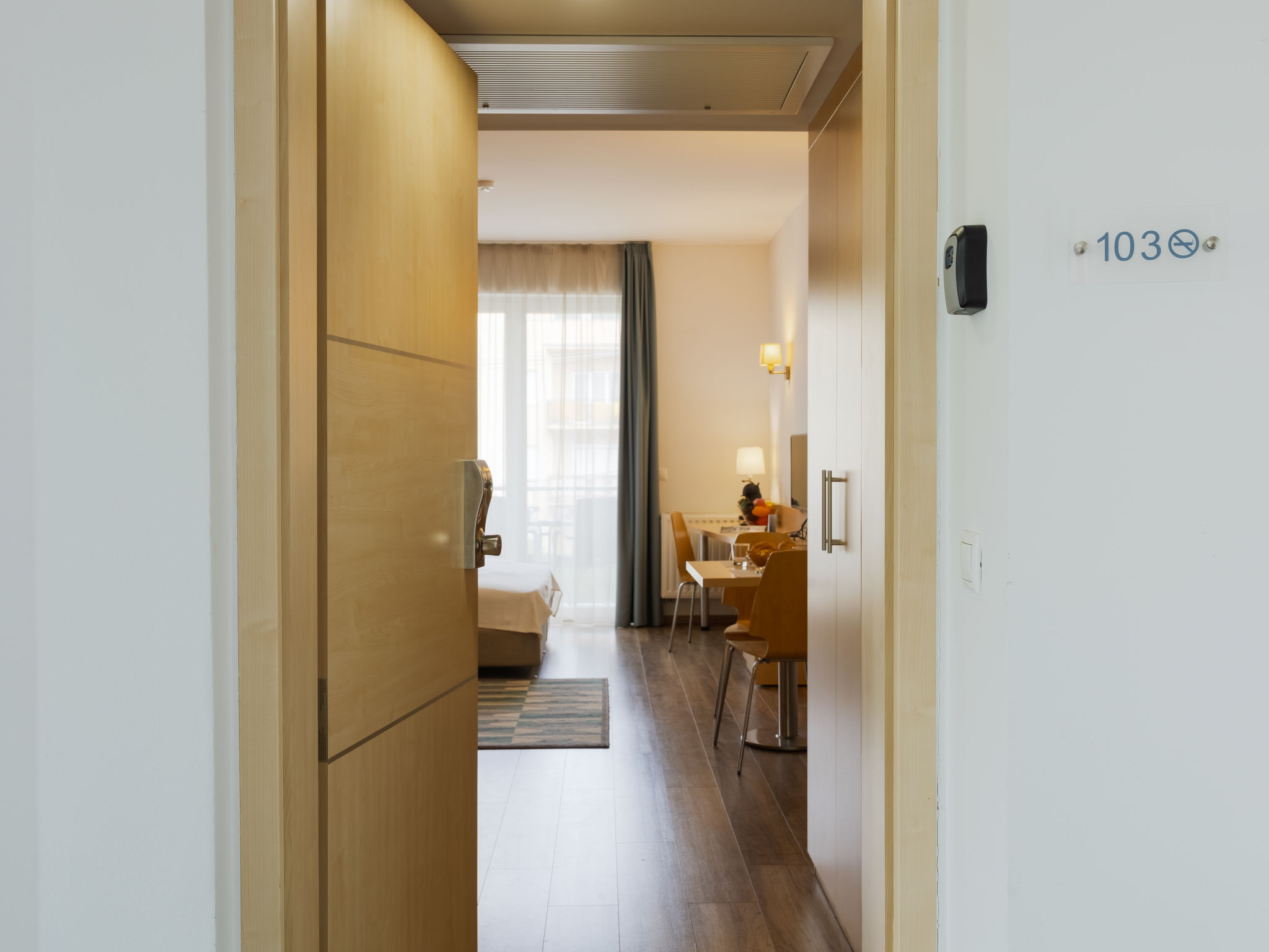"Holiday Club", studio 1-kamer. Comfortabel ingericht: open, Studio met 2 bedden (90 cm, lengte 200 cm), eettafel, kookhoek, Kabel-TV, internationale TV-zenders en air-conditioning. Uitgang naar het balkon, op het noordwesten. Kleine, open keuken (2 keramische glas kookplaten, broodrooster, magnetron, elektrische koffiemachine). Balkonmeubilair. Ter beschikking: kluis, haardroger. Parkeerplaats nr. 103 (overdekt). 1 klein huisdier/hond toegestaan. Rookmelders. EG23076255