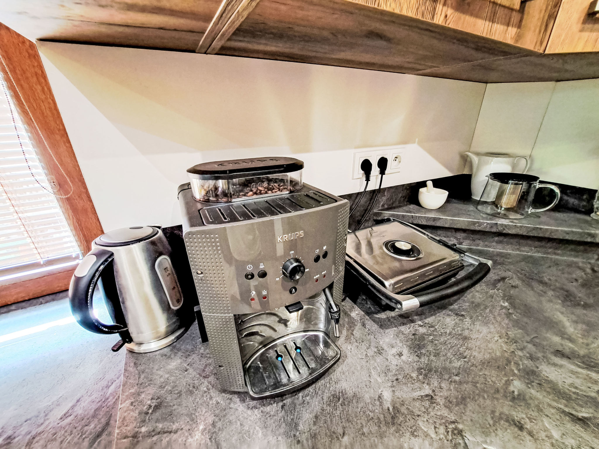 Chalet 8-kamers op 3 verdiepingen. Ruim, mooi en met veel hout ingericht: groot, open woon-/eetkamer met open haard, eethoek, bar en Kabel-TV. Groot keuken (afwasmachine, Gasfornuis, 5 kookpitten (vlammen), waterkoker, magnetron, grill, elektrische koffiemachine). Aparte WC. Bovenverdieping: 1 kamer met 1 x 2 stapelbedden, 1 2-pers bed en douche/WC. 1 kamer met 1 2-pers bed en 1 uitschuifbaar bed (2 pers.), douche/WC. 1 kamer met 1 2-pers bed. Douche/WC. Zolderverdieping: 1 kamer met 1 2-pers bed. 1 kamer met 8 bedden. 1 kleine kamer met 1 2-pers bed. 1 kinderkamer met 4 bedden. Groot terras. Terrasmeubelen, barbecue. Ter beschikking: Internet (WiFi, gratis). Geschikt voor families. Maximaal 1 huisdier/hond toegestaan.