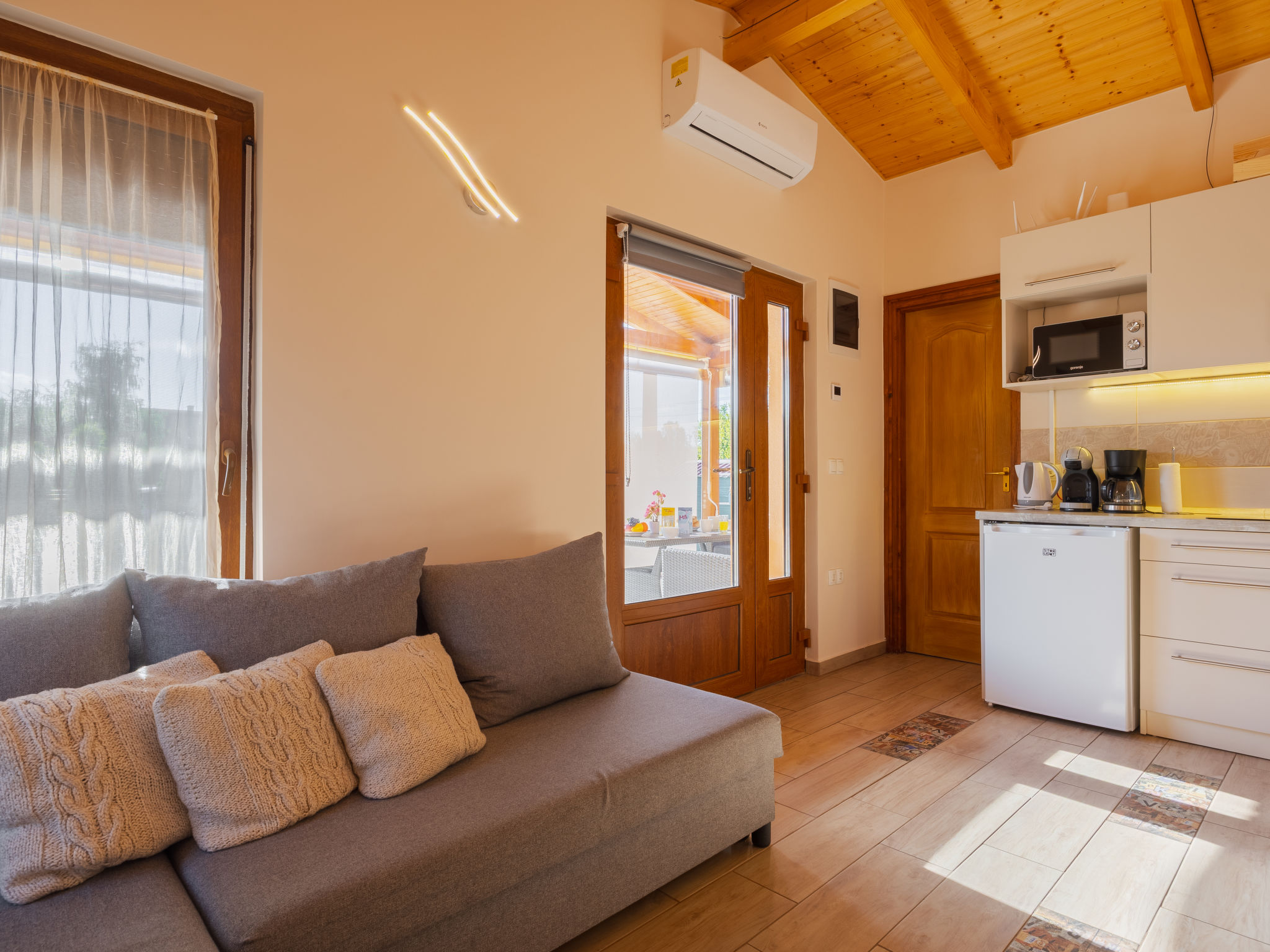 Huis 3-kamers. Comfortabel ingericht: woon-/eetkamer met eettafel, kookhoek, Digitale TV en air-conditioning. Uitgang naar het terras. 1 2-pers. kamer met 1 2-pers bed (160 cm, lengte 200 cm). 1 kamer met 2 bedden (80 cm, lengte 200 cm). Open keuken (afwasmachine, 2 inductiekookplaten, waterkoker, magnetron, elektrische koffiemachine). Douche/WC. Verwarming. Terras, op het westen gelegen. Terrasmeubelen, barbecue (verrijdbaar), ligstoelen (4). Ter beschikking: wasmachine, sauna, klamboe. Internet(WiFi)). MA20009346