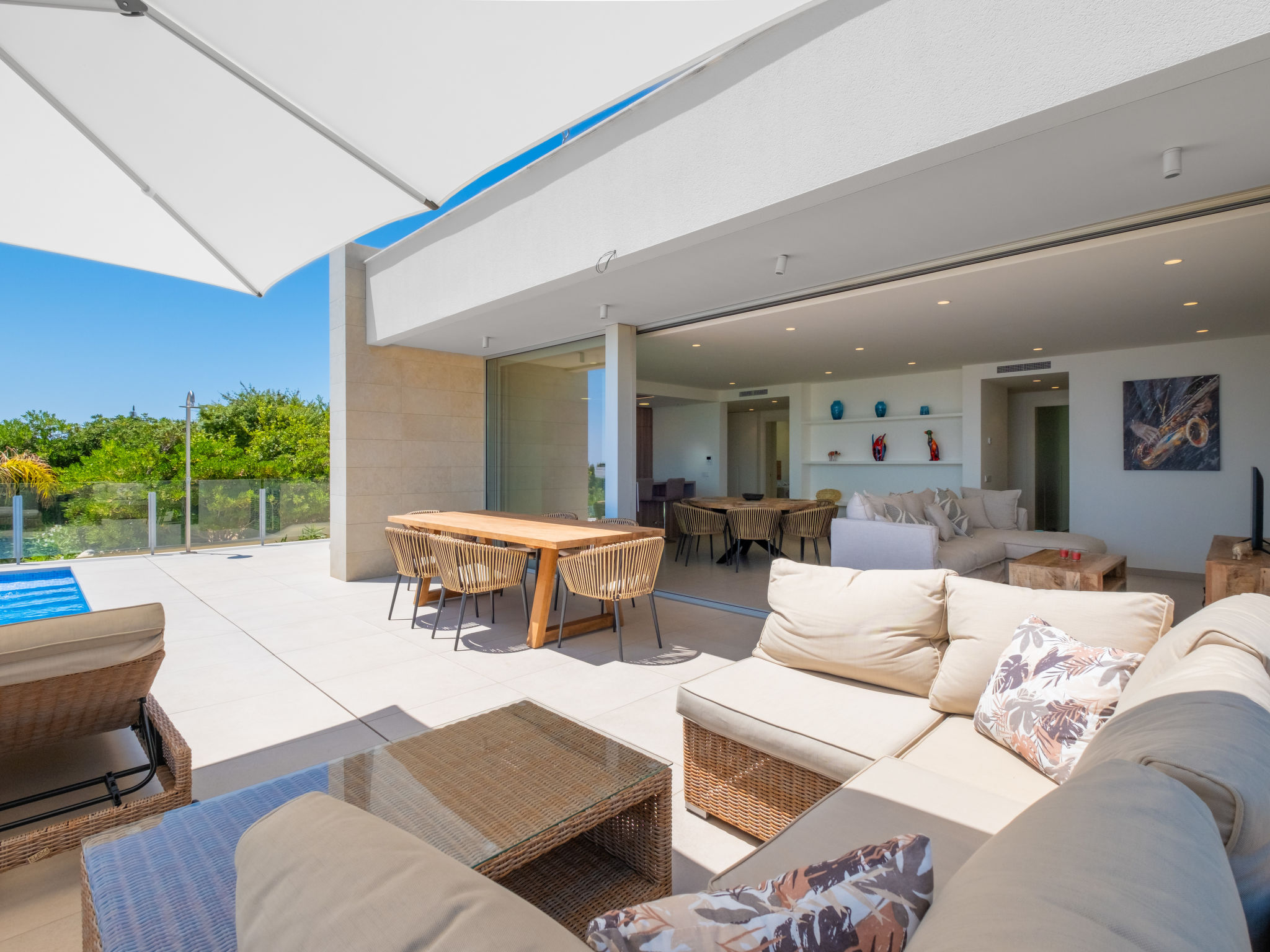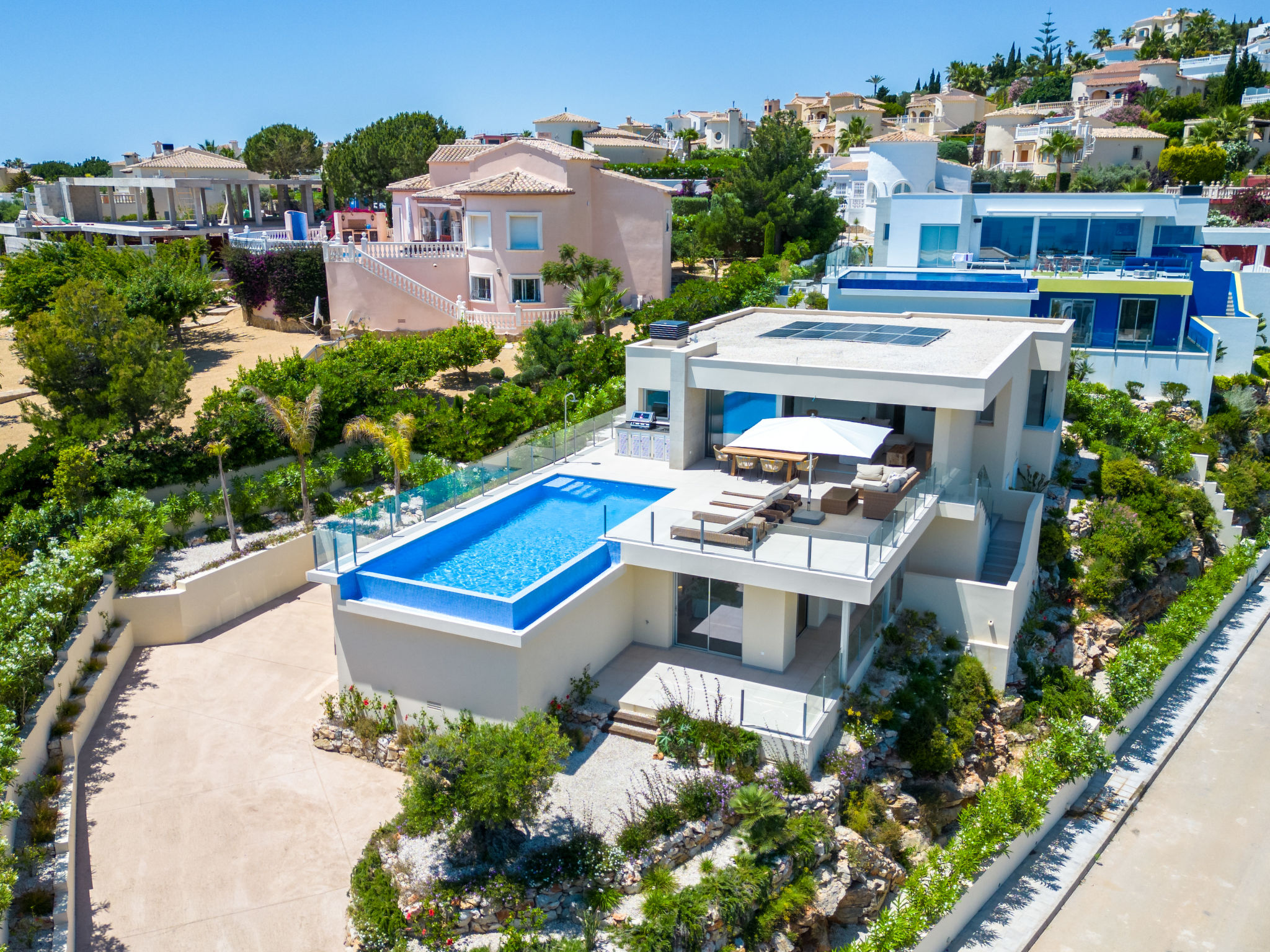 Cumbre del Sol: Zeer moderne, mooi villa "Iris", van 2 verdiepingen, bouwjaar 2025. 6 km van het centrum van Moraira, rustige, zonnige ligging villa wijk, gebied met weinig verkeer, 2 km van zee, 2 km van het strand. Voor alleengebruik: terrein 826 m2 (omheind), openluchtzwembad (8 x 4 m, seizoensgebonden beschikbaarheid: 01.Jan. - 31.Dec.) met trap. Buitendouche, terras, barbecue, parkeerplaats bij het huis. Winkel 3 km, levensmiddelenwinkel 3 km, supermarkt 3 km, restaurant 4 km, bushalte 3 km, zandstrand "Playa L'Ampolla" 7 km, rotsstrand "Cala del Moraig" 2 km. Jachthaven 7 km, jachthaven 7 km, golfterrein (12 holes) 10 km. Attracties in de buurt: Aqualandia, Mundomar, Terra Mítica, Terra Natura, Benidorm Palace (Benidorm), Les Fonts de l'Algar, Castillo de Guadalest. De eigenaar accepteert geen jeugdgroepen.