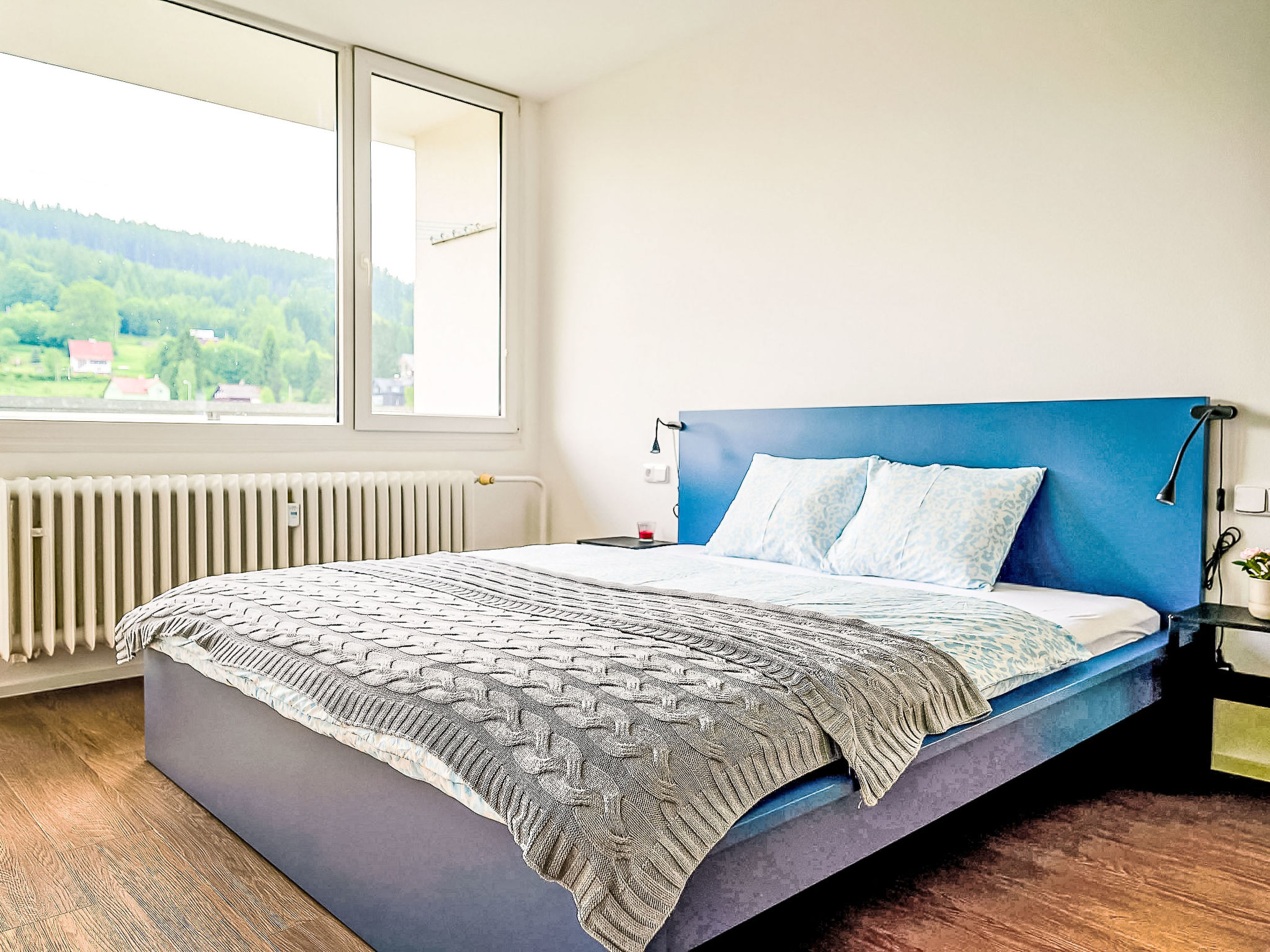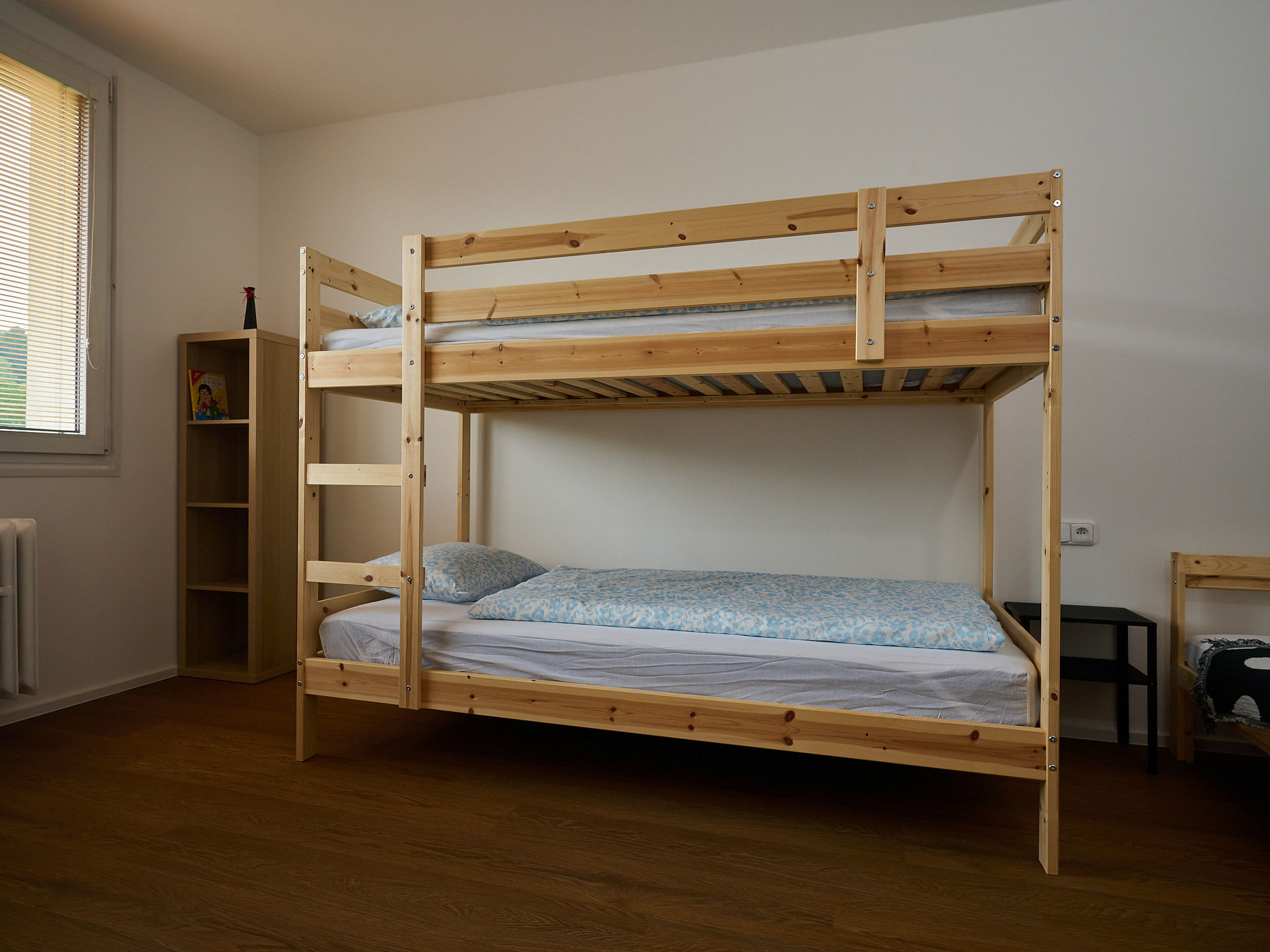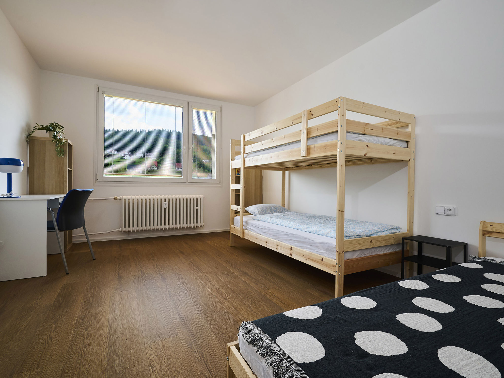 "Forest line", appartement 4-kamers 90 m2 op de 3e verdieping. Gerenoveerd in 2025, doelmatig en gezellig ingericht: woonkamer met 1 divanbed en TV. 1 kamer met 1 2-pers bed. Uitgang naar het balkon. 1 kamer met 1 bed en 1 x 1 stapelbedden. Keuken (oven, afwasmachine, 4 keramische glas kookplaten, broodrooster, waterkoker, magnetron) met eettafel. Douche, aparte WC. Verwarming. Klein balkon 6 m2. Terrasmeubelen, bergruimte. Uitzicht op de tuin en het dorp. Ter beschikking: Internet (WiFi, gratis). Bij het huis. Geschikt voor families. Rookvrij huis.
