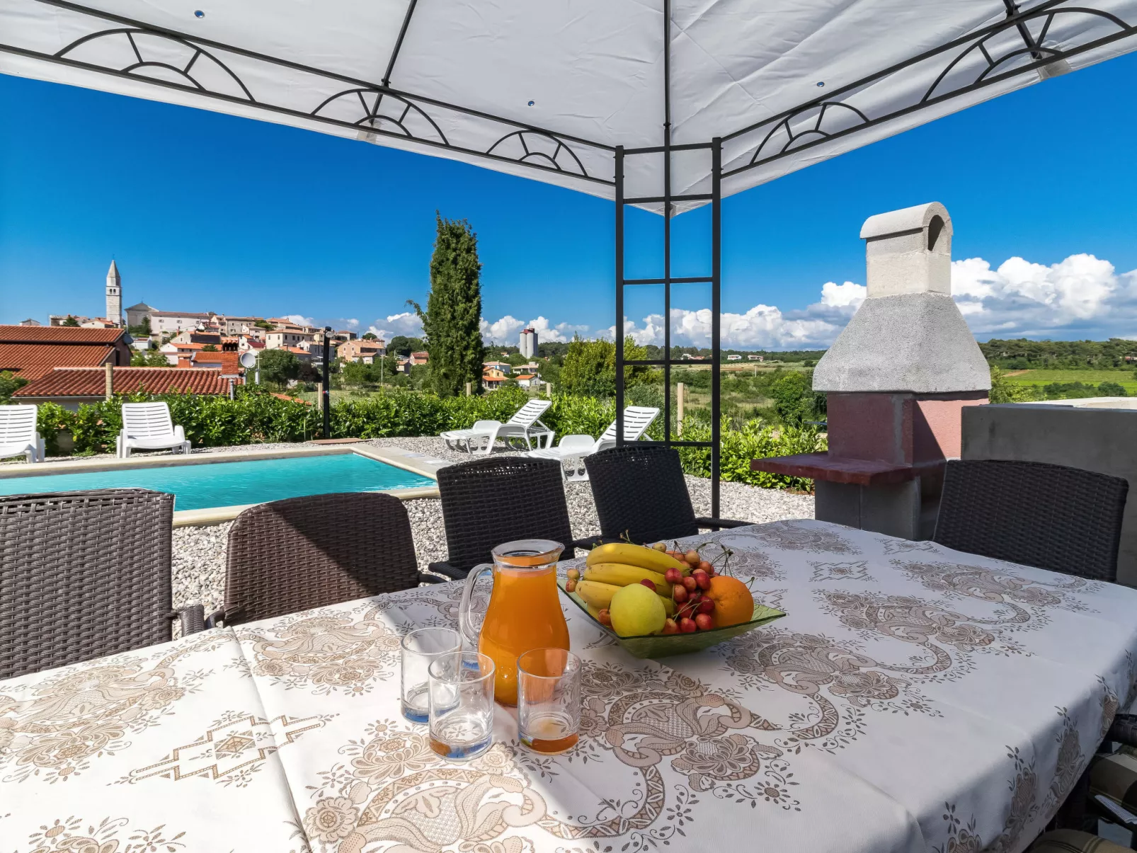 Eengezinswoning "Jurican", van 2 verdiepingen. 1 km van het centrum van Višnjna, 5 km van het centrum van Kaštelir, 10 km van het centrum van Poreč, 10 km van zee. Voor alleengebruik: terrein 1.200 m2 met gazon en bomen, openluchtzwembad verwarmd (8 x 4 m, seizoensgebonden beschikbaarheid: 27.Mrt. - 05.Nov.). WC bij het zwembad, douche/WC bij het zwembad, buitendouche, terras, barbecue, onderhoud zwembad door de eigenaar/tuinman. In het huis: internetaansluiting, wasmachine. Parkeerplaats (voor 4 auto's) op het terrein. Winkel 1 km, bushalte 8.6 km, kiezelstrand 10 km. Op aanvraag kan een transfer vanaf de luchthaven naar de vakantiewoning geregeld worden. Vliegveld 50 km van het huis. De unit bestaat uit 2 appartementen, verhuurd als een eenheid. ,Zwembad verwarmd (extra).