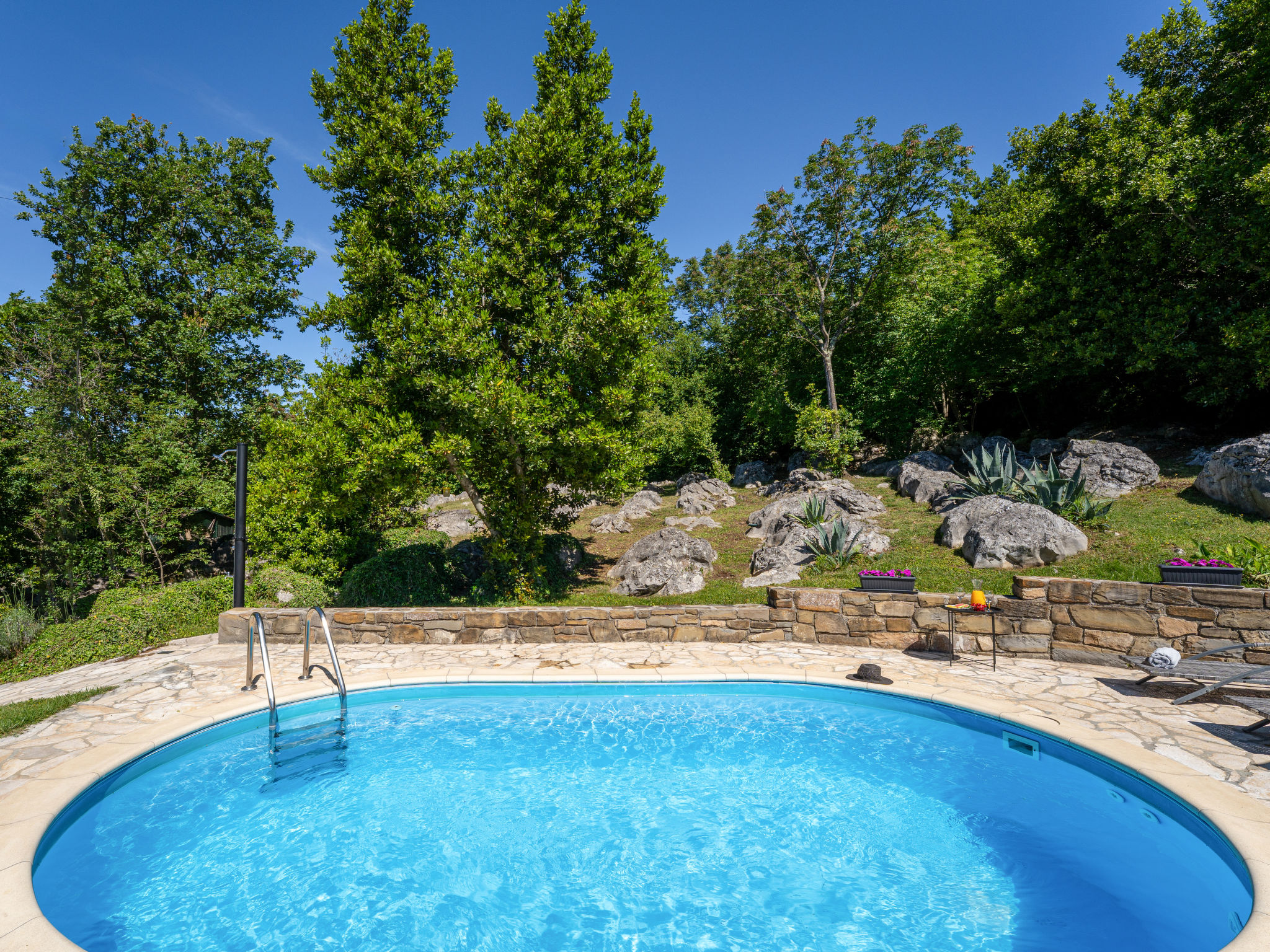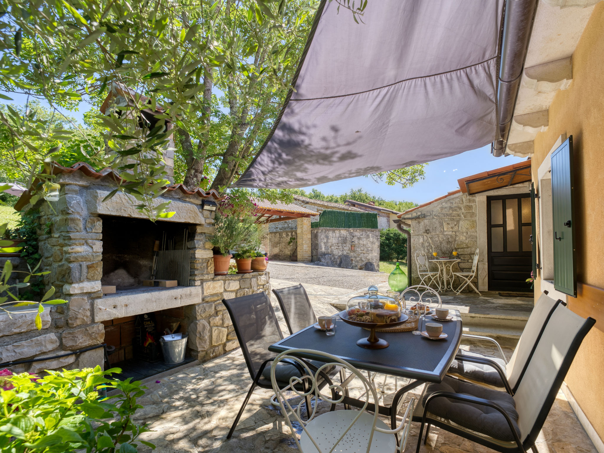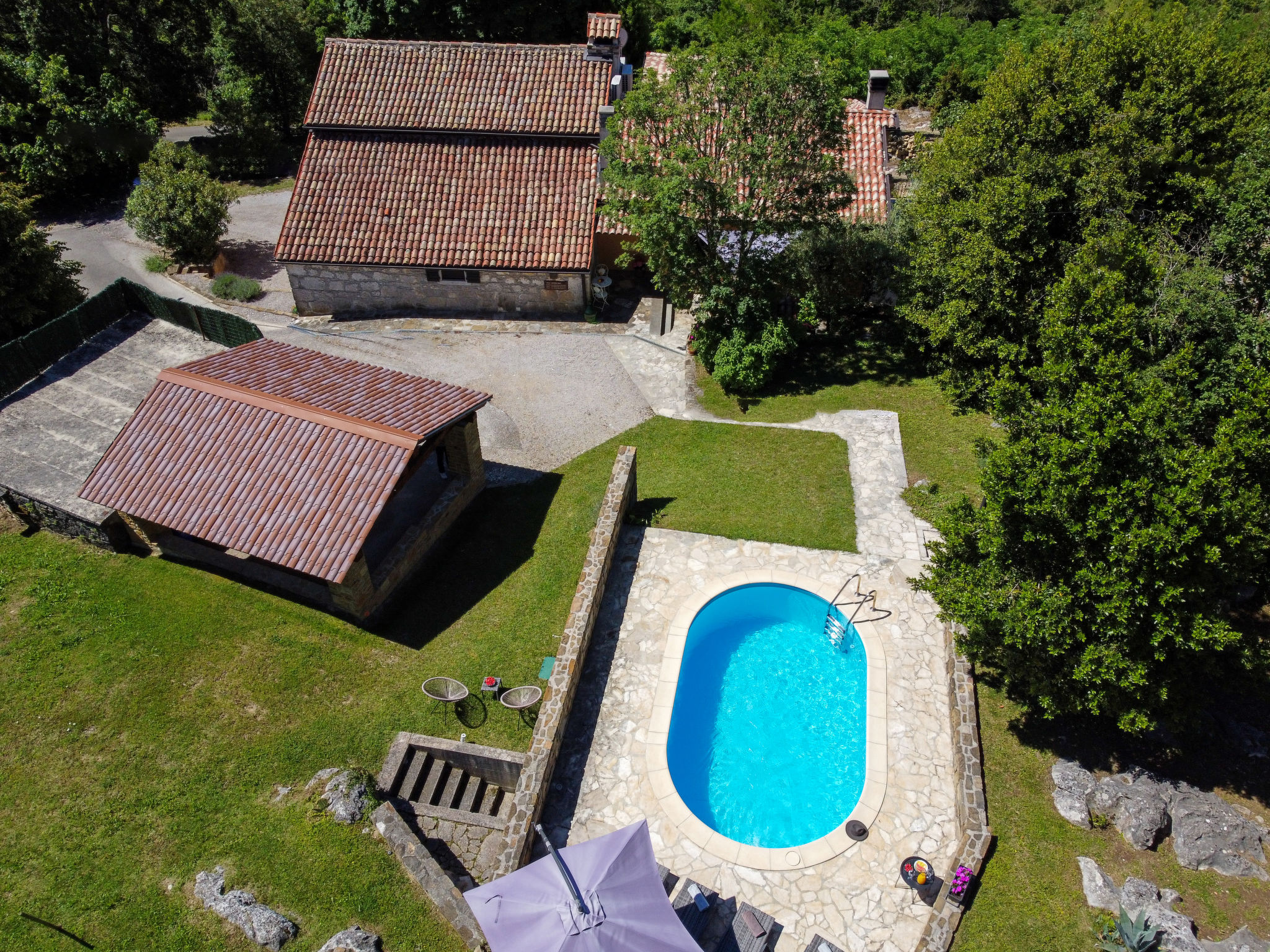 Twee onder één kap woning "Kapitani", van 2 verdiepingen, omgeven door bomen. In het gehucht Brnobići, 2.5 km van het centrum van Hum, 5 km van het centrum van Roč, 11 km van het centrum van Buzet, rustige, zonnige, verhoogde ligging, 40 km van zee, aan een doodlopende weg, te midden van groen. Voor alleengebruik: terrein 900 m2, openluchtzwembad (20 m2, 130 cm diepte, seizoensgebonden beschikbaarheid: 01.Jun. - 30.Sep.). Barbecue. In het huis: internetaansluiting, wasmachine. Parkeerplaats bij het huis op het terrein. Winkel 5 km, restaurant 2.5 km, bushalte 5.1 km, kiezelstrand 40 km. Begane grond is afgesloten en niet bewoond.