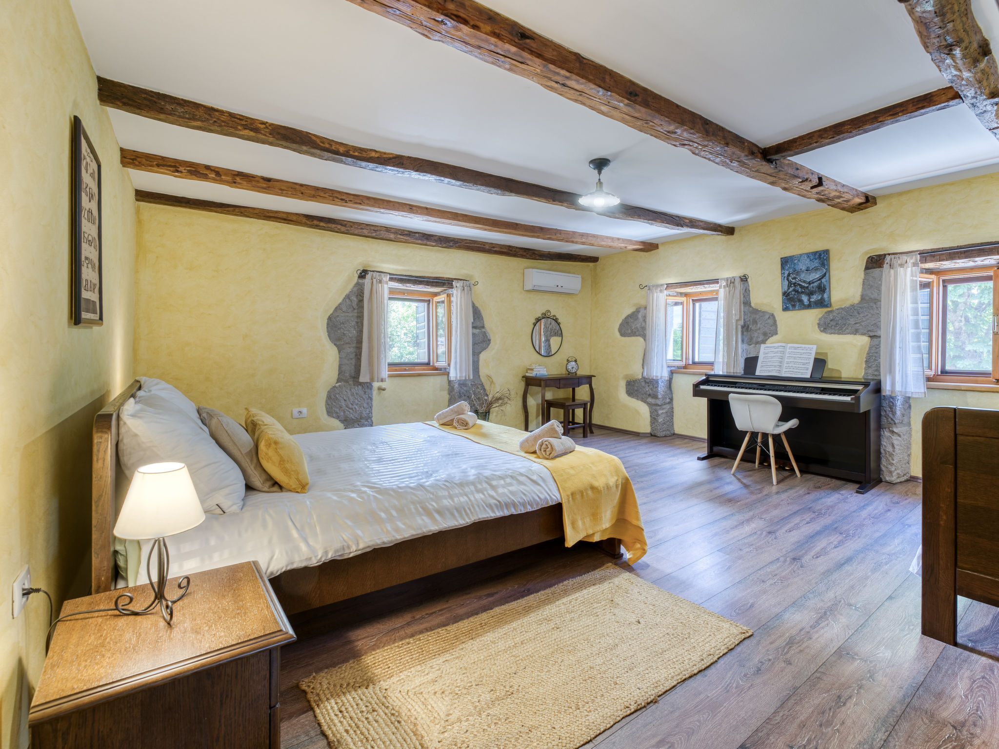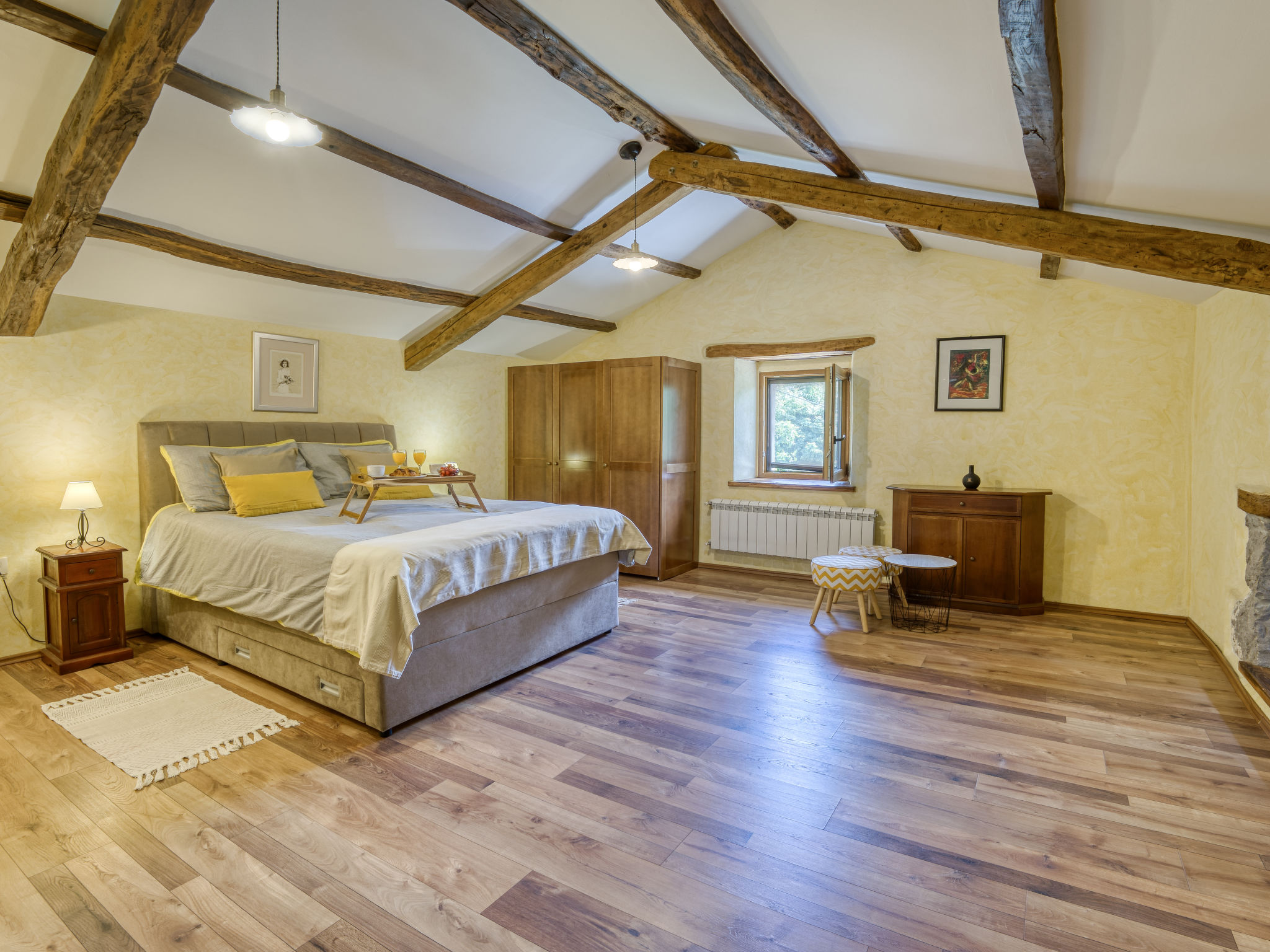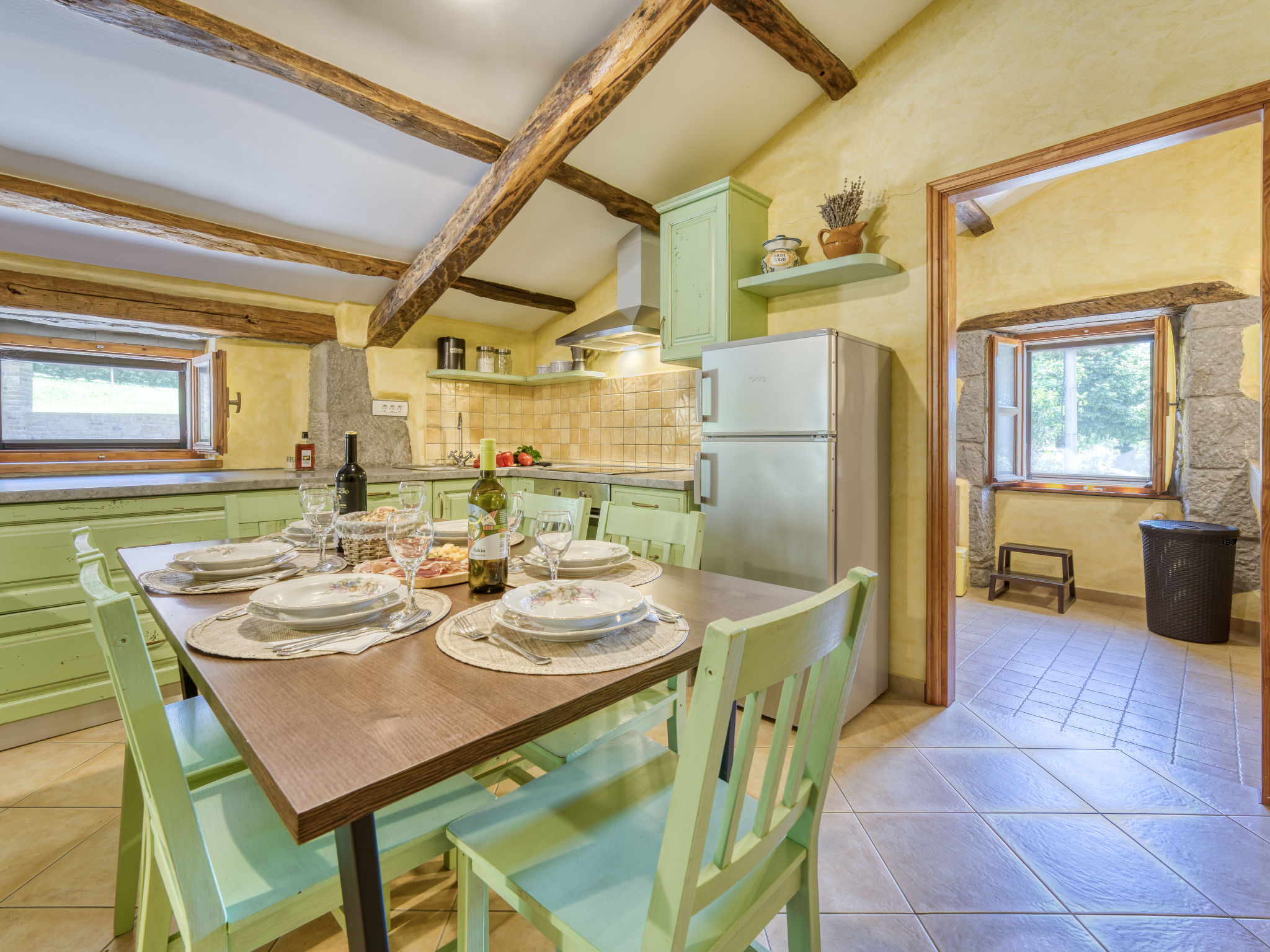 Twee onder één kap woning "Kapitani", van 2 verdiepingen, omgeven door bomen. In het gehucht Brnobići, 2.5 km van het centrum van Hum, 5 km van het centrum van Roč, 11 km van het centrum van Buzet, rustige, zonnige, verhoogde ligging, 40 km van zee, aan een doodlopende weg, te midden van groen. Voor alleengebruik: terrein 900 m2, openluchtzwembad (20 m2, 130 cm diepte, seizoensgebonden beschikbaarheid: 01.Jun. - 30.Sep.). Barbecue. In het huis: internetaansluiting, wasmachine. Parkeerplaats bij het huis op het terrein. Winkel 5 km, restaurant 2.5 km, bushalte 5.1 km, kiezelstrand 40 km. Begane grond is afgesloten en niet bewoond.