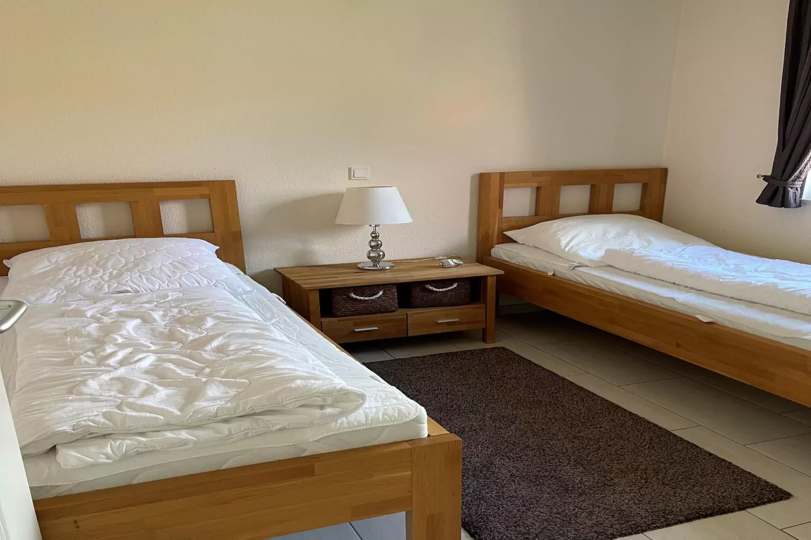 Moderne twee-onder-een-kapwoning in het nieuwe gedeelte van het vakantiepark, ca. 91 m², ideaal voor maximaal 6 personen. De accommodatie beschikt over een open woonkamer met keuken en eethoek, drie slaapkamers met elk twee bedden en een badkamer met douche en toilet op elke verdieping.
