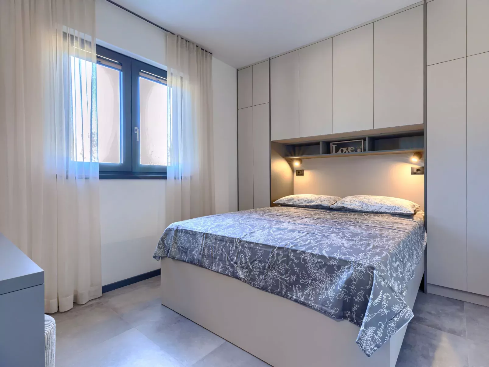 Huis 3-kamers 90 m2, op de begane grond. Woon-/eetkamer met 1 divanbed (160 cm, lengte 200 cm), Sat-TV (Flatscreen TV). Uitgang naar het terras. 1 kamer met 1 2-pers bed (160 cm, lengte 200 cm), douche/WC en air-conditioning. 1 kamer met 1 2-pers bed (160 cm, lengte 200 cm), air-conditioning. Open keuken (oven, afwasmachine, 4 kookpitten (vlammen), broodrooster, waterkoker, magnetron, diepvriezer, elektrische koffiemachine). Douche/WC. Terras 20 m2, overdekt. Terrasmeubelen, barbecue (verrijdbaar), ligstoelen. Ter beschikking: strijkijzer, haardroger. Internet (Internet (WiFi), gratis).