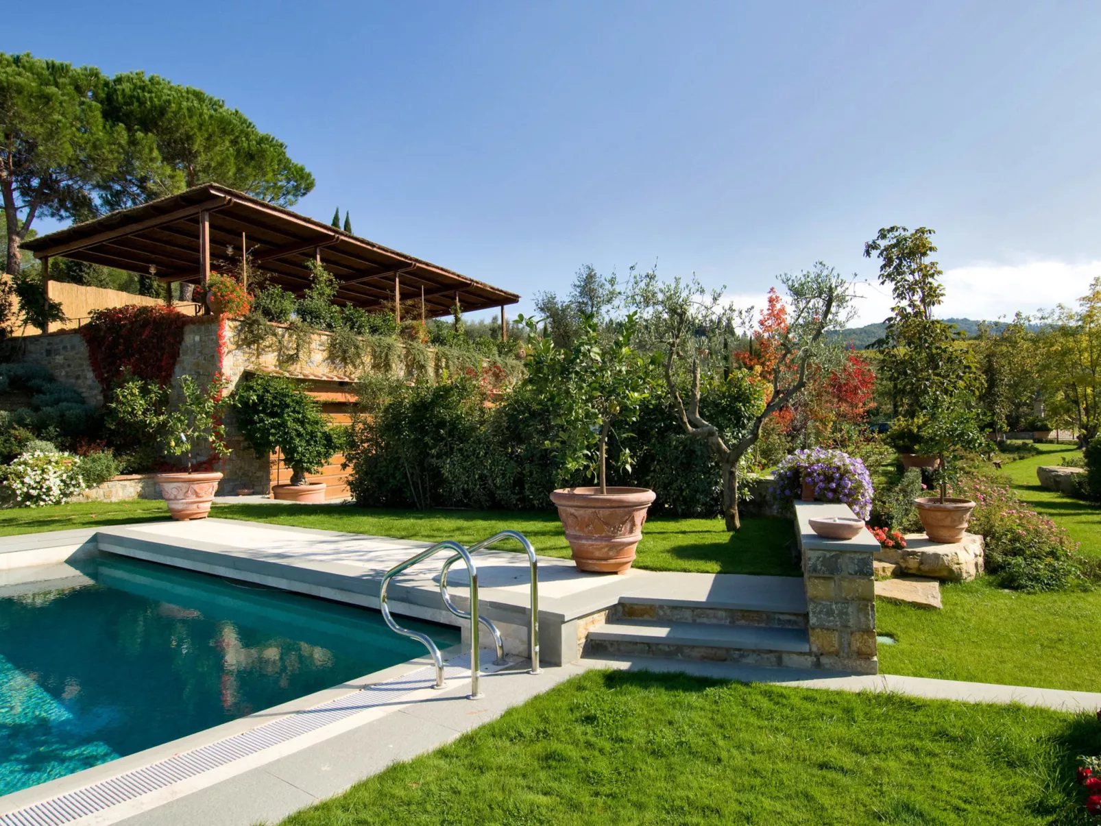 Lamore di Carla is een charmant stenen boerderijhuis met bijgebouw, gelegen in het groene Borgo Savignola, in het hart van het historische wijngoed Savignola Paolina. De villa is omgeven door grote panoramische terrassen die uitkijken op het privézwembad. Het pand biedt plaats aan maximaal elf personen: het hoofdgebouw kan vijf gasten herbergen, terwijl het bijgebouw plaats biedt aan zes personen. Beide units zijn onafhankelijk en voorzien van een volledig uitgeruste keuken, die alleen van buitenaf met elkaar verbonden zijn. Vanaf 2026 zal de accommodatie een pickleballveld bieden. Agriturismo op het wijngoed "Savignola Paolina", bouwjaar 1780. Huurobject bestaande uit hoofd-/ bijgebouw, 3 km van het centrum van Greve in Chianti, 35 km van het centrum van Firenze, 46 km van het centrum van Siena, verhoogde ligging op een heuvel, te midden van groen. Voor alleengebruik: tuin op verschillende niveaus, 1.000 m2 (omheind), openluchtzwembad omheind (16 x 6 m, 120 - 200 cm diepte, seizoensgebonden beschikbaarheid: 04.Apr. - 30.Sep.). Buitendouche, tuinmeubelen, barbecue, onderhoud zwembad door de eigenaar/tuinman. In het complex: receptie, restaurant, massage (extra). Kok op verzoek (extra). Ontbijt en half pension op verzoek op aanvraag (extra). Toegangsweg tot aan het huis (200 m onverharde weg). Parkeerplaats op het terrein. Winkel 3 km, supermarkt 3 km, bushalte 3.3 km. Golfterrein (18 holes) 20 km. Attracties in de buurt: Panzano in Chianti 8 km, Badia a Passignano 12 km, Radda in Chianti, San Donato 18 km, Castellina in Chianti 20 km, Gaiole in Chianti 30 km, San Gimignano 46 km. Geschikt voor families. Geschikt voor evenementen. Het is mogelijk een kookcursus te boeken. Lokale verkoop van streekproducten. De eigenaar woont op hetzelfde terrein.