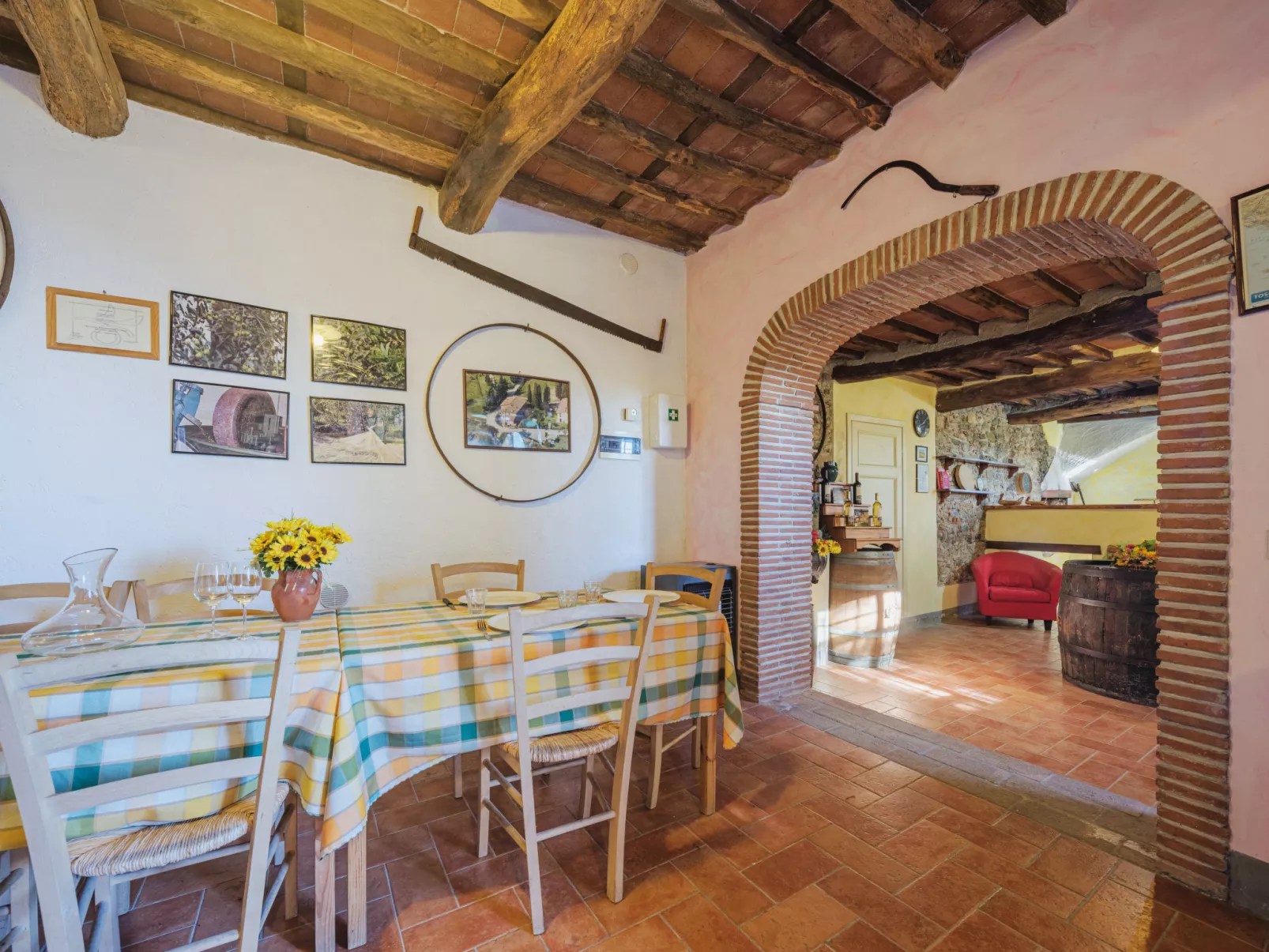 "Il Pozzo", appartement 3-kamers 100 m2 op 2 verdiepingen. Gerenoveerd, mooi en smaakvol ingericht: woon-/slaapkamer met 1 2-pers divanbed, open haard en TV. Open keuken (oven, afwasmachine, 4 kookpitten (vlammen), broodrooster, diepvriezer, elektrische koffiemachine) met eettafel. Douche/WC. Bovenverdieping: 1 kamer met 1 2-pers bed (160 cm). 1 kamer met 2 bedden. Bad/WC. Gas-verwarming (extra), air-conditioning. Zithoek in de tuin. Terrasmeubelen. Ter beschikking: kinderbed tot 2 jaar. Internet (WiFi, gratis). Parkeerplaats bij het huis. Niet rokers woning. Privé ingang, rookmelders, brandblusser. IT046017B5UDWT7VXO