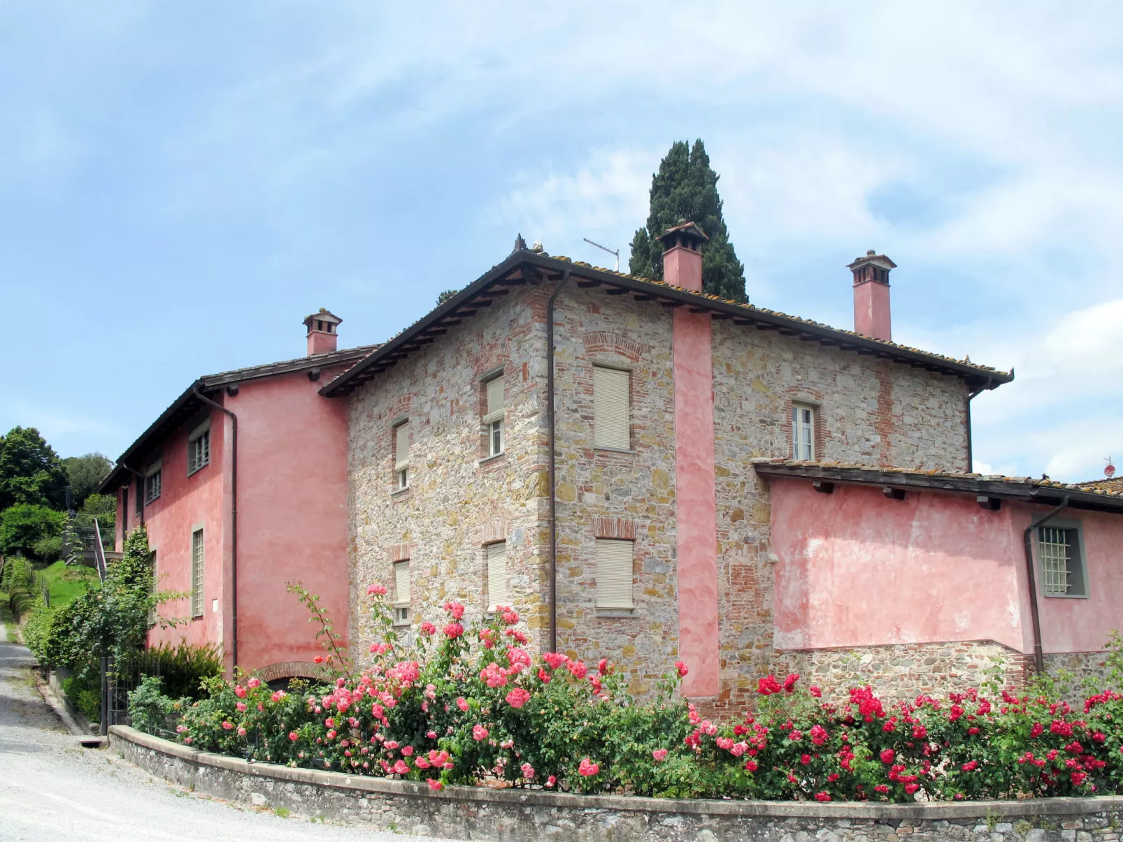 San Michele di Moriano: Zeer mooi landhuis "Le Fornaci", omgeven door bomen, weiden en velden. 7 appartementen in de woning. 500 m van het centrum van San Michele di Moriano, aan de rand van de plaats, 4.5 km van het centrum van Ponte a Moriano, 6 km van het centrum van Lucca, rustige, zonnige ligging, 35 km van zee, te midden van groen. Voor medegebruik: terrein 700 m2 (omheind), verzorgde tuin met planten en bomen, weide, boomgaard, openluchtzwembad (12 x 6 m, 100 - 140 cm diepte, seizoensgebonden beschikbaarheid: 16.Mei. - 10.Okt. openingstijden zwembad: 08:00-20:00). Tafeltennis, jeu de boules, tuinmeubelen. In het huis: salon met TV, tafelvoetbal, centrale verwarming, air-conditioning, wasmachine (voor medegebruik), Verwarming ter plaatse te betalen (28.Mrt. - 31.Okt.), verwarming alleen beschikbaar van 01.Nov. - 27.Mrt., fietsen beschikbaar. 200 m lange toegangsweg (onverharde weg). Parkeerplaats op het terrein. Supermarkt 2.7 km, bushalte 1 km, zandstrand "Viareggio" 35 km. Attracties in de buurt: Pisa 26 km, Collodi Pinocchio Park 18 km, Viareggio 33 km, Montecatini Terme 38 km, San Giuliano Terme 20 km, Firenze 82 km. Bekende meren kunnen gemakkelijk worden bereikt: Torre del Lago 35 km, Lago di Massaciuccoli 25 km. Wandelgebied Antro del Corchia Levigliani 57 km, Botri Canyion dell´Orrido 34 km, Grotta del Vento Fabbriche di Vergemoli 42 km. Auto noodzakelijk. Lokale verkoop van streekproducten.