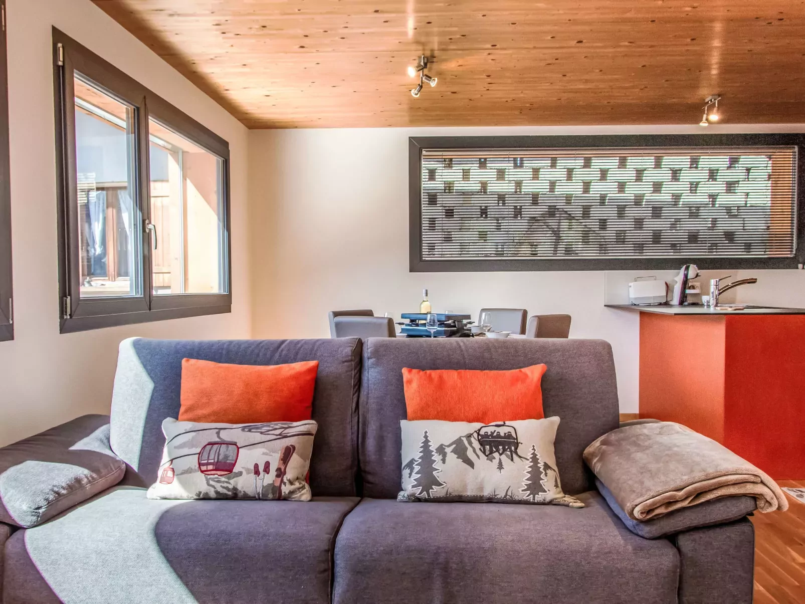 "Le Raccard", chalet 2-kamers 65 m2 op 2 verdiepingen. Licht, volledig gerenoveerd in 2019, zeer comfortabel en romantisch ingericht: woon-/eetkamer 36 m2 met 1 divanbed (160 cm, lengte 200 cm), Kabel-TV en radio. Open keuken (oven, afwasmachine, 4 inductiekookplaten, magnetron, elektrische koffiemachine, pads voor de koffiemachine (Dolce Gusto) extra, raclette oven, fondue Set (chinese, kaas)). Aparte WC. Gas-verwarming. Bovenverdieping: 1 open groot kamer met afgeschuinde daken, hoogte van het plafond 120 - 300 cm met 1 2-pers bed (160 cm, lengte 200 cm), douche/WC. Klein terras 15 m2, op het zuiden gelegen. Terrasmeubelen. Zeer mooi uitzicht op de bergen. Ter beschikking: wasmachine, droger. Internet (WiFi, gratis). Niet geschikt voor kinderen onder 6 jaar. Niet rokers woning.