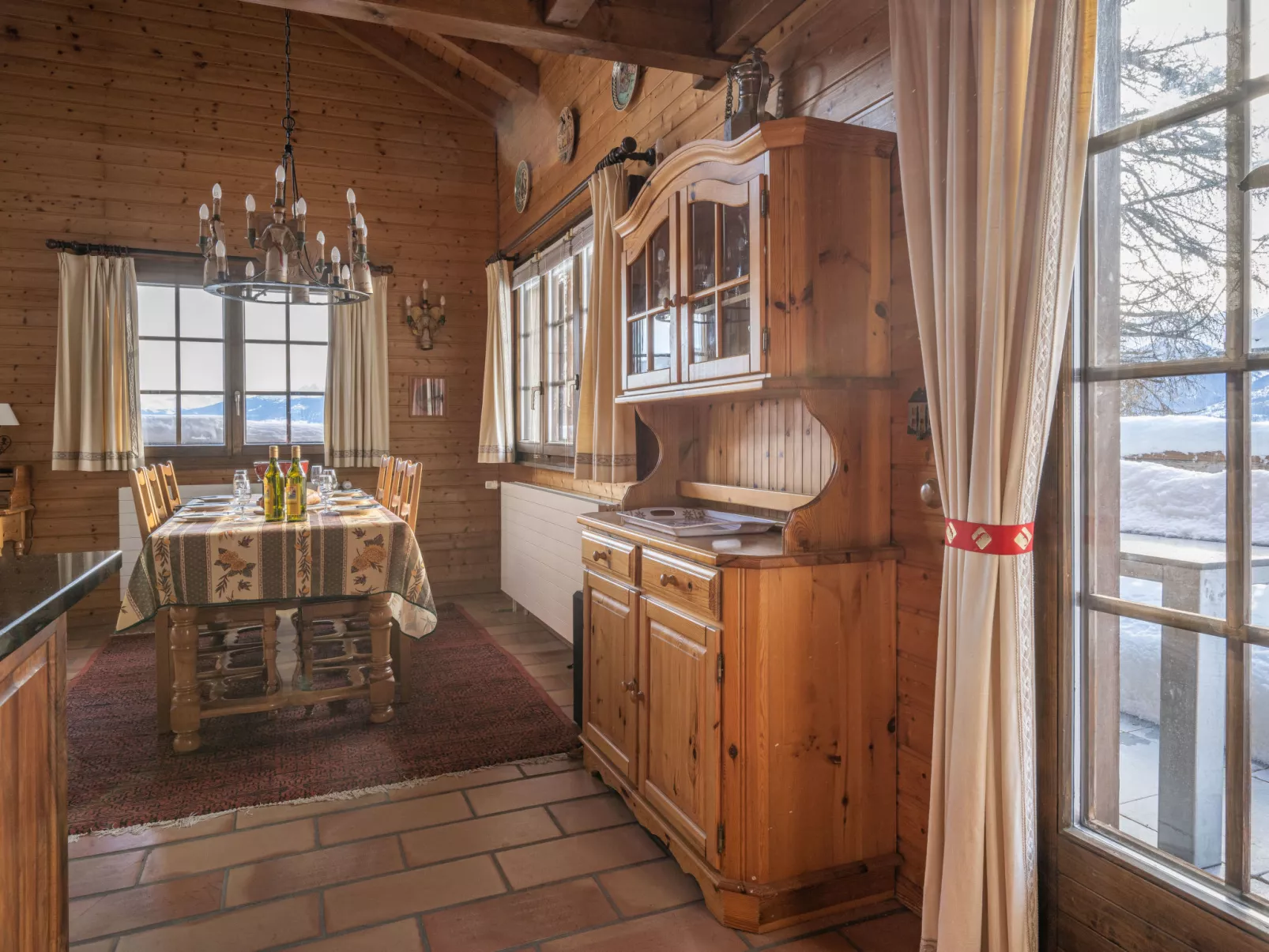 "Le Sorbier", chalet 3-kamers 74 m2 op 3 verdiepingen, op het zuidoosten gelegen. Comfortabel en mooi ingericht: groot woon-/eetkamer met open haard, Kabel-TV en Flatscreen TV. Uitgang naar het balkon, op het zuiden en op het oosten. Galerij met 1 2-pers bed. Open keuken (oven, afwasmachine, 4 keramische glas kookplaten, broodrooster, waterkoker, elektrische koffiemachine, pads voor de koffiemachine (Nespresso) extra, raclette oven, fondue Set (chinese, kaas)). Uitgang naar het terras, op het zuiden en op het westen. Douche/WC. Souterrain: 1 kamer met 1 2-pers bed. 1 kamer met 1 2-pers bed. Bad/WC. Groot balkon, op het zuiden gelegen en op het oosten gelegen. Terrasmeubelen, barbecue, ligstoelen. Mooi uitzicht op de bergen en het dal. Ter beschikking: wasmachine, droger, haardroger, haardhout (gratis). Internet (Internet (WiFi), gratis). Parkeerplaats (1 Auto) bij het huis. In plaats van een afgesloten slaapkamer bevinden sommige slaapgedeeltes zich in een open ruimte (galerij, nis, etc.).