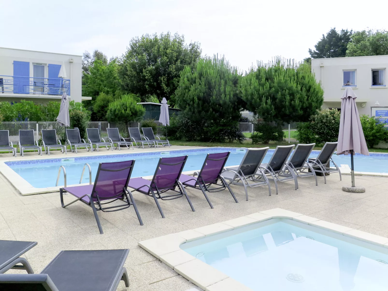 Vakantiecomplex "Les Carrelets". 7 huizen in de plaats. 71 appartementen in de woning. 2.5 km van het centrum van Saint Palais-sur-Mer, 700 m van zee. Voor medegebruik: terrein, openluchtzwembad verwarmd (9 x 4 m, 75 - 130 cm diepte, seizoensgebonden beschikbaarheid: 15.Mei. - 15.Sep.). Hot tub, jeu de boules, kinderspeelplaats. In het complex: receptie, sauna (extra). Hot tub, wasmachine, droger (voor medegebruik, extra). Parkeerplaats (beperkt aantal). Winkel 100 m, supermarkt 2.5 km, bushalte "Auture" 280 m, zandstrand 1 km, rotsstrand 700 m. De afgebeelde foto is slechts een voorbeeld. De huurobjecten kunnen wb. Woonoppervlak, kamerindeling verschillen.