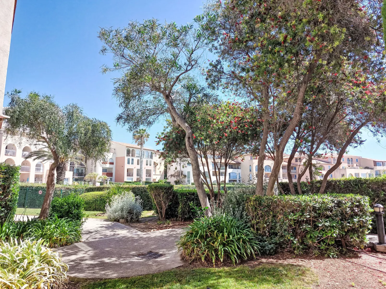 Appartement 3-kamers 45 m2, op de begane grond. Doelmatig en mooi ingericht: woon-/eetkamer met 1 bed (80 cm, lengte 190 cm), TV (Flatscreen TV). Uitgang naar het terras. Cabine met 1 x 2 stapelbedden (80 cm, lengte 190 cm). 1 kamer met 1 2-pers bed (140 cm, lengte 190 cm). Kookhoek (afwasmachine, 4 keramische glas kookplaten, broodrooster, waterkoker, magnetron, diepvriezer, elektrische koffiemachine). Badkamer, douche/WC. Elektrische verwarming. Terras 7 m2, overdekt, op het westen gelegen, kleine zithoek in de tuin 3 m2, op het westen gelegen. Terrasmeubelen. Uitzicht in de verte op zee. Ter beschikking: Internet (Internet (WiFi), extra). Parkeerplaats nr. 401 (Niveau 1) (overdekt), hoogte 190 cm, breedte 230 cm. Maximaal 1 huisdier/hond toegestaan. TV alleen FR. Rookmelders. In plaats van een afgesloten slaapkamer bevinden sommige slaapgedeeltes zich in een open ruimte (galerij, nis, etc.).