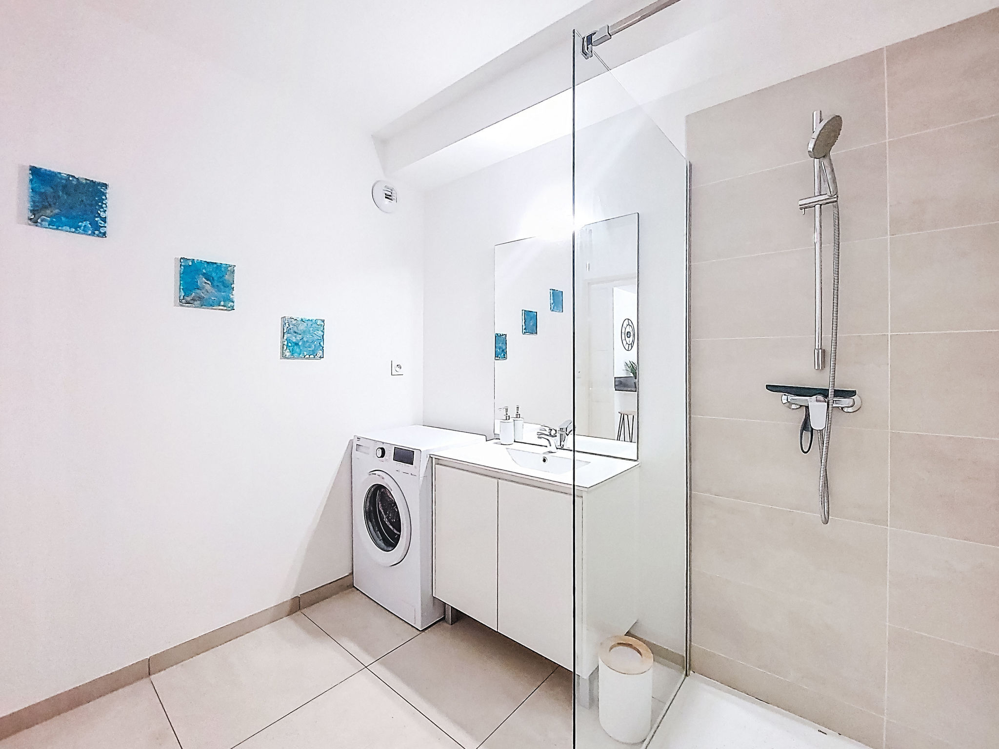 Appartement 2-kamers 41 m2, op verhoogde begane grond. Licht, comfortabel en mooi ingericht: woon-/eetkamer met 1 divanbed (140 cm, lengte 190 cm), TV (Flatscreen TV). Uitgang naar het terras. 1 kamer met 1 2-pers bed (140 cm, lengte 200 cm), TV. Uitgang naar de tuin. Open keuken (oven, afwasmachine, 3 inductiekookplaten, broodrooster, waterkoker, diepvriezer, elektrische koffiemachine, pads voor de koffiemachine (Nespresso) extra). Douche, aparte WC. Elektrische verwarming. Terras 13 m2, tuin 34 m2. Terrasmeubelen. Ter beschikking: wasmachine. Internet (WiFi, extra). Parkeerplaats nr. 18 (overdekt, 1 Auto). Niet rokers woning. TV alleen FR. Rookmelders. Aanbod door een particulier volgens art. 155, IV van CGI. 83112001752EZ