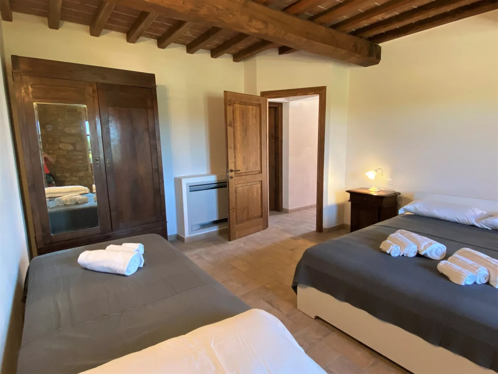Vakantiecomplex "Podere la Querciola", van 2 verdiepingen, gerenoveerd in 2021, omgeven door weiden en velden. In de wijk Casino di Terra, 11 km van het centrum van Guardistallo, 14 km van het centrum van Cecina, geïsoleerde, rustige ligging, 16 km van zee. Voor medegebruik: terrein met planten en bomen, openluchtzwembad (6 x 11 m, 150 cm diepte, seizoensgebonden beschikbaarheid: 01.Mei. - 15.Okt.). Kinderzwembad, buitendouche, hot tub, tuinmeubelen, barbecue. In het complex: Internet (WiFi), wasmachine (extra). Toegangsweg (700 m onverharde weg). Parkeerplaats. Winkel 11 km, restaurant 2 km, bar 2 km, bushalte 1.1 km, zandstrand "Marina di Cecina" 16 km. Attracties in de buurt: Volterra 24 km, Pisa 70 km, Firenze 100 m.