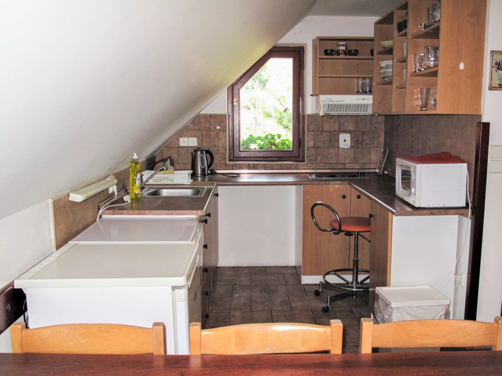 Huis 6-kamers 270 m2 op 2 verdiepingen. Gerenoveerd in 2014, mooi en stijlvol ingericht: speelkamer met eettafel. Woonkamer met zwedenkachel, eettafel, eethoek, bar, Sat-TV en radio. 1 kamer met 4 bedden en douche/WC. Kookhoek (4-pits kookplaat, afwasmachine, broodrooster, waterkoker, magnetron, elektrische koffiemachine). Elektrische verwarming. Zolderverdieping: 1 kamer met afgeschuinde daken met 6 bedden en douche/WC. 1 kamer met afgeschuinde daken met 3 bedden en douche/WC. 1 kamer met afgeschuinde daken met 3 bedden en douche/WC. Studio met 4 bedden, 1 2-pers bed, eettafel, kookhoek, douche/WC, Sat-TV en radio. Met afgeschuinde daken, open keuken in de hal (2-pits kookplaat, broodrooster, waterkoker, magnetron) met eettafel. Elektrische verwarming. Zithoek in de tuin. Terrasmeubelen, barbecue. Ter beschikking: kinderstoel, kinderbed. Internet (WiFi, gratis). Geschikt voor families. Niet rokers woning. Maximaal 2 huisdieren/honden toegestaan.