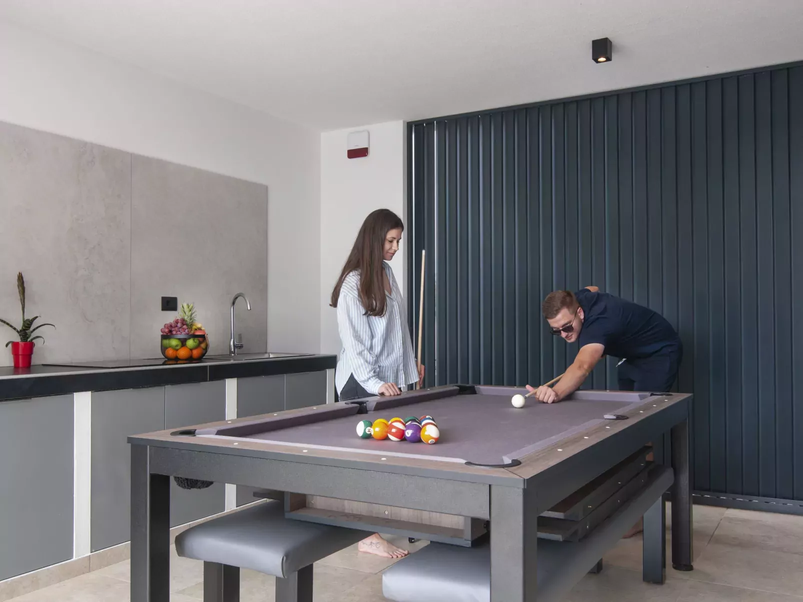 Villa 4-kamers 200 m2 op 2 verdiepingen. Mooi ingericht: woon-/eetkamer met 1 2-pers divanbed (160 cm, lengte 200 cm), Sat-TV (Flatscreen TV). Uitgang naar het zwembad. Open keuken (oven, afwasmachine, 4 keramische glas kookplaten, broodrooster, waterkoker, magnetron, diepvriezer, elektrische koffiemachine). Aparte WC. Bovenverdieping: 3 kamers, elke kamer heeft 1 2-pers bed (160 cm, lengte 200 cm), douche/WC en Sat-TV (Flatscreen TV). Uitgang naar het terras. Terras 25 m2. Terrasmeubelen. Uitzicht op het zwembad. Ter beschikking: haardroger. Internet (Internet (WiFi), gratis).