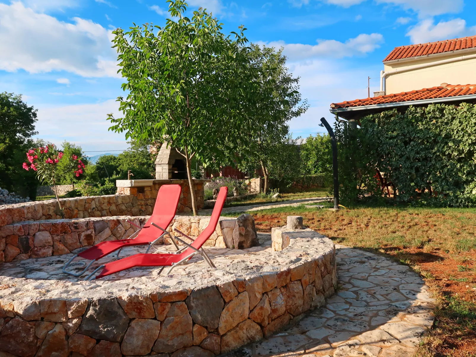 Eengezinswoning "Ljudevit", van 2 verdiepingen. 13.5 km van het centrum van Malinska, 450 m van het centrum van Polje, 13 km van het centrum van Vrbnik, 2.5 km van zee, 2.5 km van het strand. Voor alleengebruik: terrein 1.500 m2 met bomen, weide. Buitendouche, barbecue, kinderspeelplaats (schommel). In het huis: internetaansluiting, wasmachine. Parkeerplaats (voor 3 auto's) op het terrein. Winkel 450 m, bushalte 1.8 km, zandstrand 2.5 km. Vliegveld 17 km van het huis.
