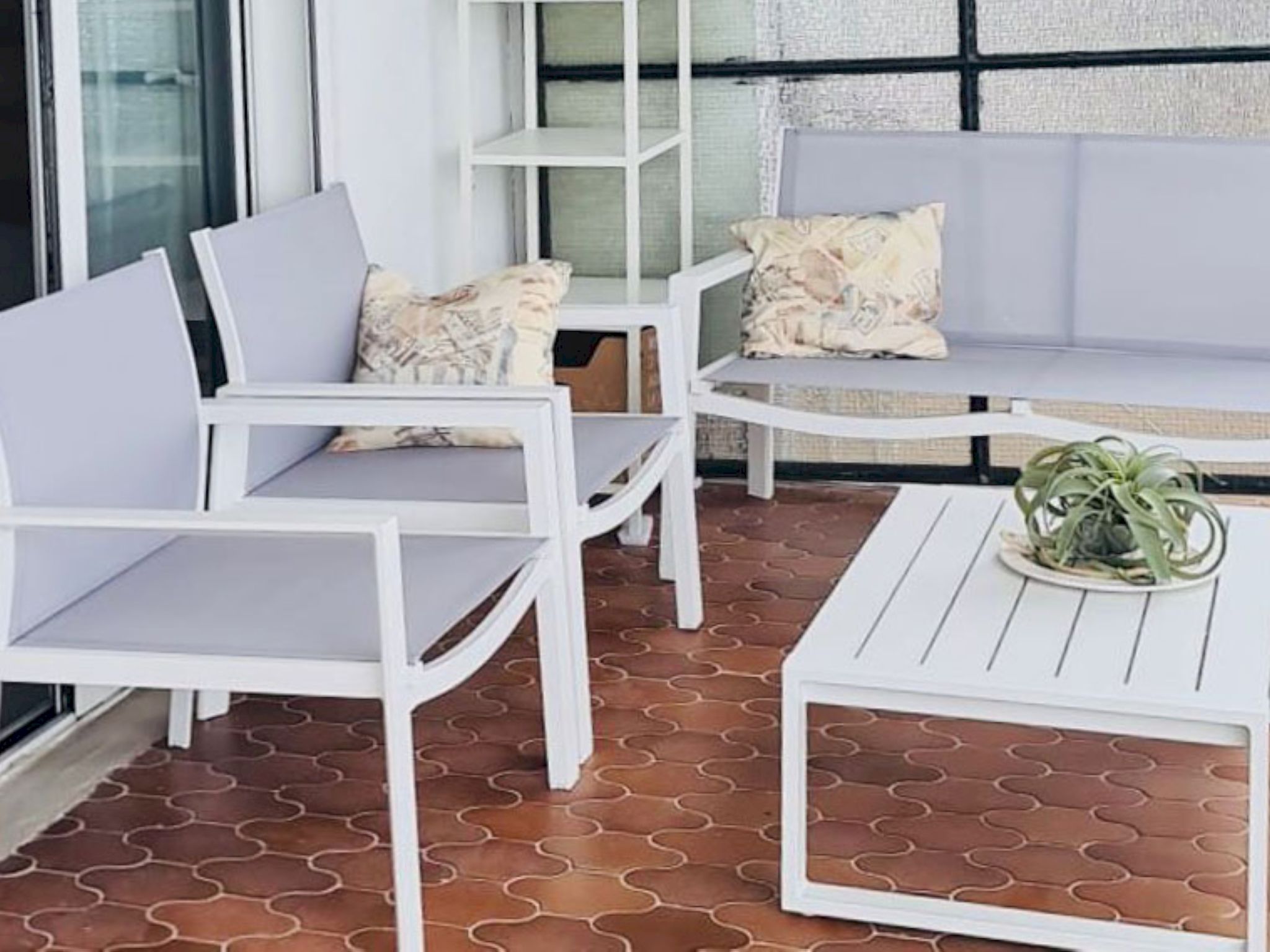 "Loomins studio", studio 1-kamer 40 m2. Volledig gerenoveerd in 2025, modern en stijlvol ingericht: woon-/eetkamer met 1 2-pers divanbed (1 x 180 cm, lengte 200 cm), eettafel, Digitale TV en Flatscreen TV. Uitgang naar het terras, op het noorden en op het oosten. 1 2-pers. kamer met 1 2-pers bed (180 cm, lengte 200 cm). Uitgang naar het terras. Keuken (oven, afwasmachine, 2 keramische glas kookplaten, broodrooster, waterkoker, magnetron, diepvriezer, elektrische koffiemachine, pads voor de koffiemachine (Nespresso (not incl)). Douche/WC. Geen verwarmingsmogelijkheid. Terrasmeubelen. Mooi uitzicht op het zwembad. Ter beschikking: wasmachine, strijkijzer, haardroger. Internet (WiFi, gratis). Geschikt voor families. TV alleen ES. HUTG-003859