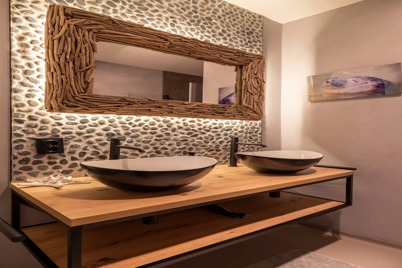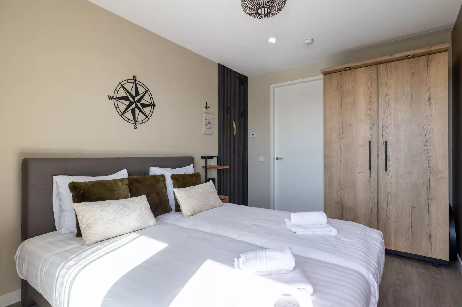De gezellige woonkamer is voorzien van een grote loungebank waar u kunt ontspannen en genieten van het prachtige uitzicht op het strand en de Oosterschelde. Voor entertainment is het appartement uitgerust met een grootbeeld-tv voor filmavonden of gamen. De moderne, open keuken is volledig uitgerust met een kookplaat, combimagnetron, vaatwasser, koelkast, vriezer en alle benodigdheden voor het bereiden van uw favoriete maaltijden. Een Quooker en Nespresso-apparaat zijn beschikbaar voor snelle koffiepauzes. Het appartement beschikt over twee slaapkamers, elk met twee eenpersoonsbedden (90x200cm), die een comfortabel tweepersoonsbed vormen. De stijlvolle badkamer is voorzien van een ruime inloopdouche en dubbele wastafel. De accommodatie is ideaal voor vier volwassenen of gezinnen met kinderen van 12 jaar en ouder. Stap naar buiten en geniet van twee heerlijke terrassen: een met uitzicht op de haven en een aan de achterkant, perfect om te ontspannen of buiten te eten. Met directe toegang tot het strand kunt u gemakkelijk een duik in de zee nemen voor een verfrissende duik.