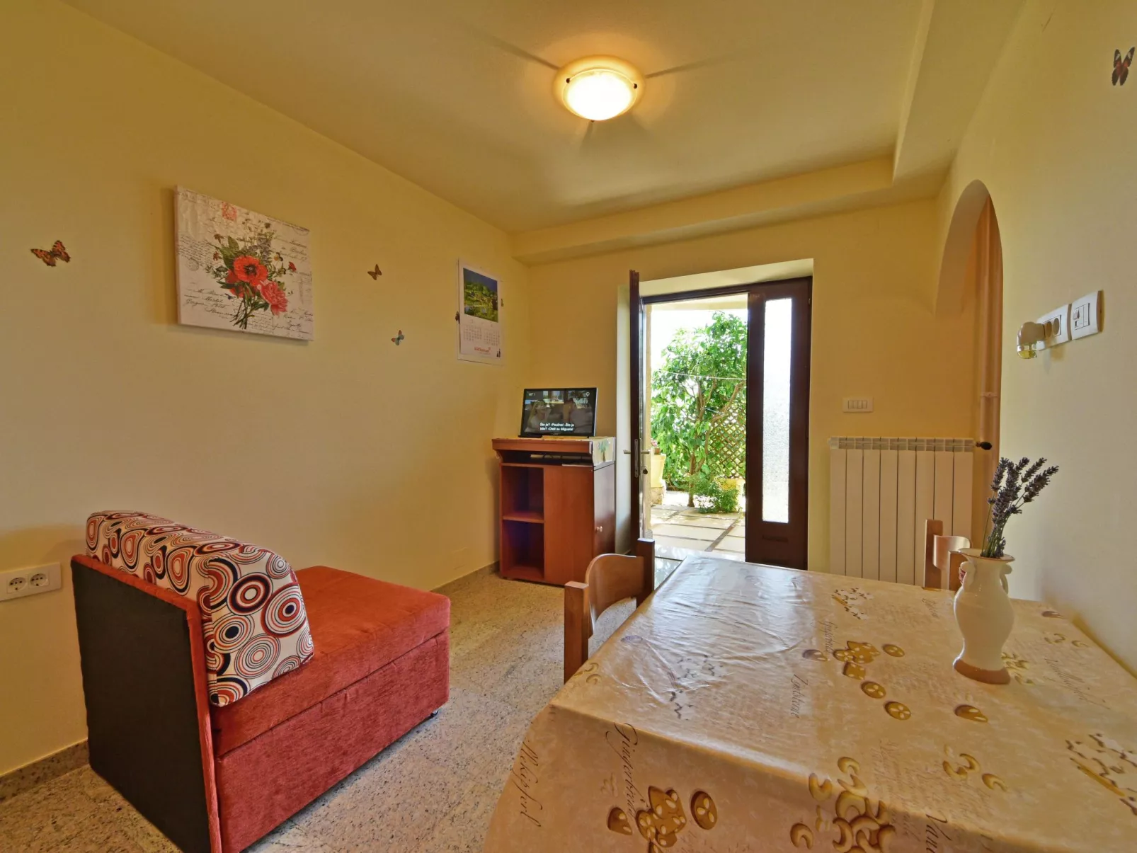 Appartementencomplex "Marija". 900 m van het centrum, rustige, zonnige ligging tegen een helling, 650 m van zee, 650 m van het strand, te midden van groen. Voor medegebruik: tuin gazon 60 m2, planten. Barbecue. In het huis: internetaansluiting, centrale verwarming. Smalle toegangsweg. Parkeerplaats bij het huis op het terrein. Winkel 350 m, supermarkt 1 km, restaurant, café, bushalte 500 m, kiezelstrand, rotsstrand, strandbad 650 m. Tennis 550 m.