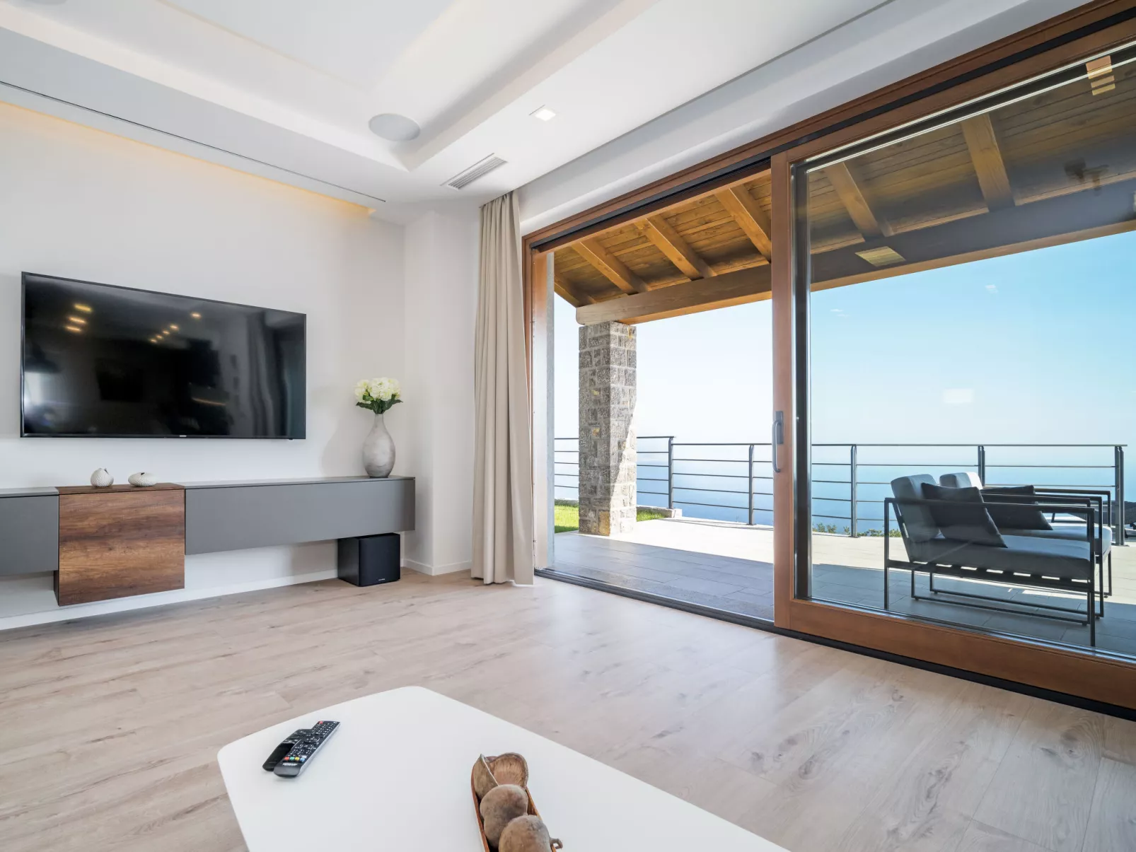 Villa 5-kamers 220 m2 op 3 verdiepingen, op het zuidoosten gelegen. Zeer mooi en luxueus ingericht: woon-/eetkamer 55 m2 met Sat-TV (Flatscreen TV), stereo-installatie. Uitgang naar het terras. 1 kamer met 1 2-pers bed (180 cm, lengte 200 cm), douche/WC, dubbele wastafels en Sat-TV (Flatscreen TV). Uitgang naar het terras. Open keuken (oven, afwasmachine, 4 inductiekookplaten, magnetron, diepvriezer, elektrische koffiemachine). Aparte WC. Bovenverdieping: 1 kamer met 1 bed (120 cm, lengte 200 cm), douche/WC en Sat-TV (Flatscreen TV). 1 kamer 16 m2 met 2 bedden (90 cm, lengte 200 cm), douche/bidet/WC, dubbele wastafels en Sat-TV (Flatscreen TV). Uitgang naar het terras. 1 kamer 22 m2 met 1 2-pers bed (180 cm, lengte 200 cm), bad/bidet/WC, dubbele wastafels en Sat-TV (Flatscreen TV). Uitgang naar het terras. Zolderverdieping: (wenteltrap) open galerij 42 m2, met afgeschuinde daken, hoogte van het plafond 95 - 195 cm met 1 bed (180 cm, lengte 200 cm), Sat-TV (Flatscreen TV). Geen verwarmingsmogelijkheid. 2 terrassen 12 m2, overdekt, terras 16 m2, overdekt. Terrasmeubelen, ligstoelen, bergruimte. Mooi panoramazicht op zee en de baai. Ter beschikking: kluis, haardroger. Internet (Internet (WiFi), gratis). Terras 8 m2.