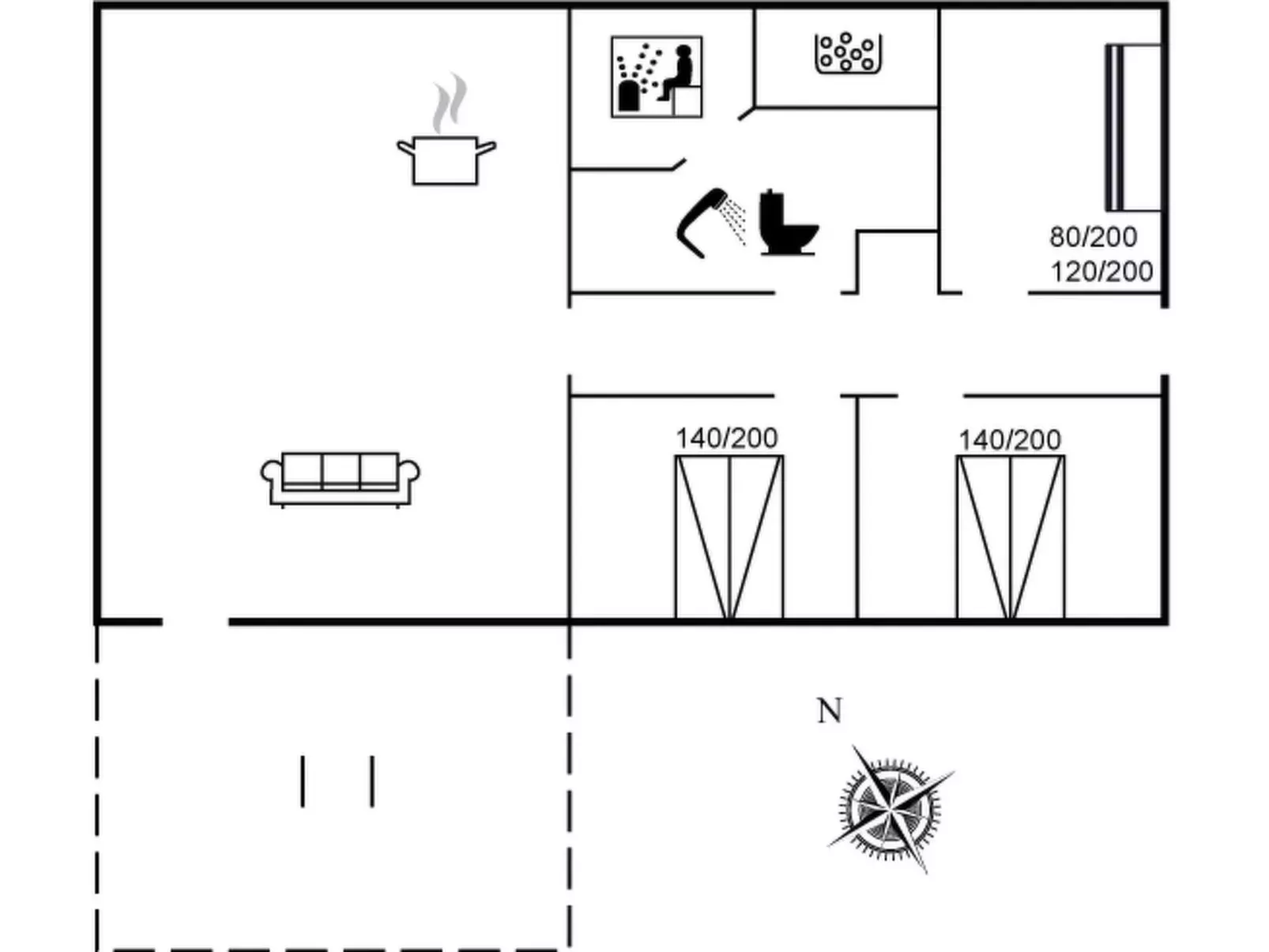 Eengezinswoning, bouwjaar 1972. 250 m van zee. Voor alleengebruik: terrein 930 m2, verzorgde tuin. Barbecue, kinderspeelplaats (schommel). In het huis: sauna, wasmachine, droger. Parkeerplaats bij het huis. Carport. Levensmiddelenwinkel 9 km. Golfterrein 21 km. De eigenaar accepteert geen jeugdgroepen.