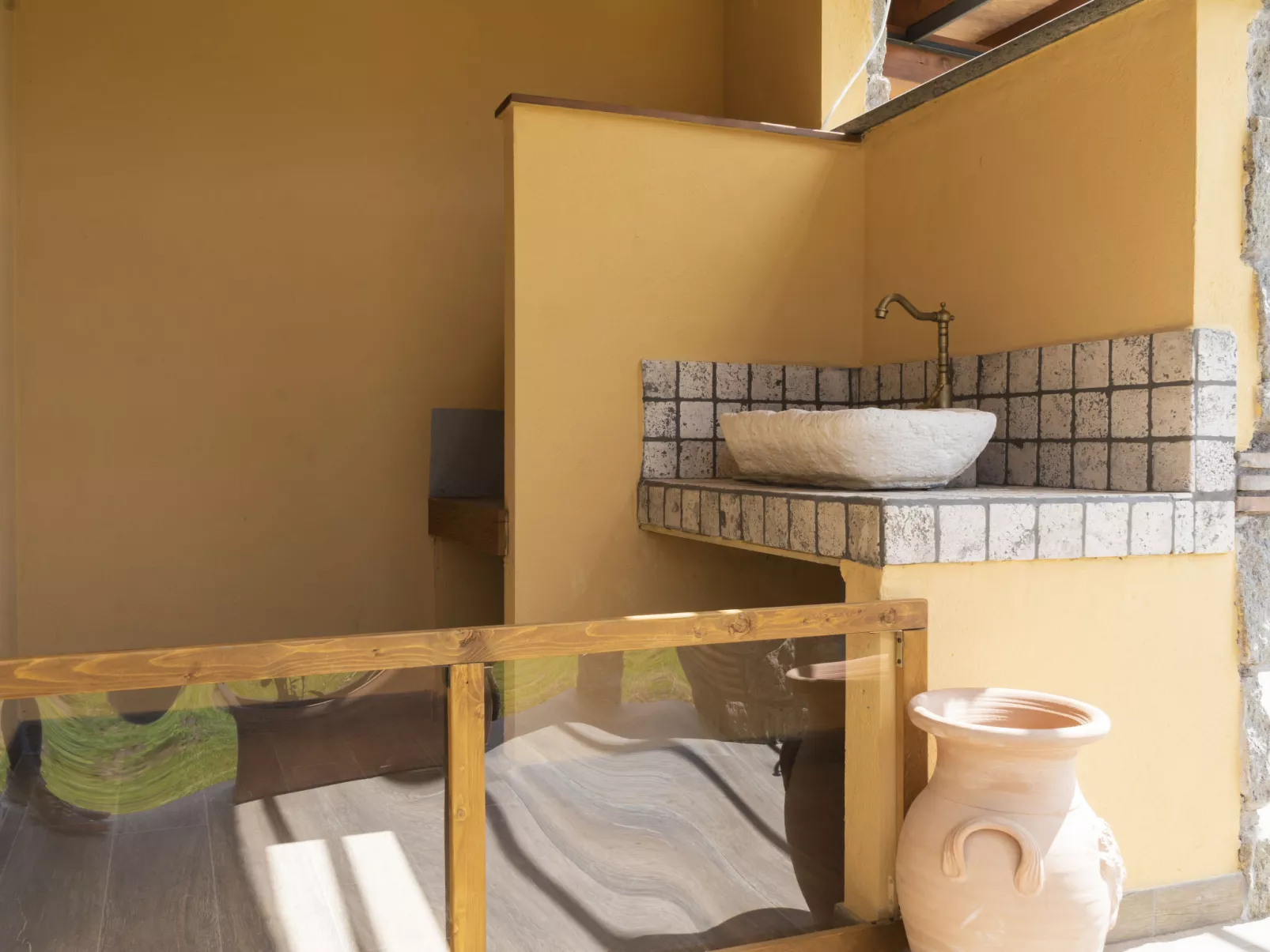 Moderne, comfortabel chalet "Melograno", vrijstaand. 2 huizen in de plaats. 3 km van het centrum van Sutri, 50 km van het centrum van Roma, 45 km van zee, 12 km van het meer. Voor medegebruik: park 3 ha (omheind). Barbecue. Voor alleengebruik: tuin 500 m2, openluchtzwembad (6 x 3 m, 130 cm diepte, seizoensgebonden beschikbaarheid: 16.Mei. - 03.Okt.). Buitendouche, tuinmeubelen, onderhoud zwembad door de eigenaar/tuinman. In het huis: receptie, ontspanningsruimte. Overdekte parkeerplaats op het terrein. Oplaadstation. Supermarkt 2 km, bushalte 1.2 km, zandstrand "Santa Severa" 45 km, meer (zwemmen) "Lago Di Vico" 12 km. Golfterrein (18 holes) 7 km. Attracties in de buurt: Viterbo 30 km, Lado Di Bracciano 13 km. Lokale verkoop van streekproducten. Gesloten residentie met een elektrische deur.