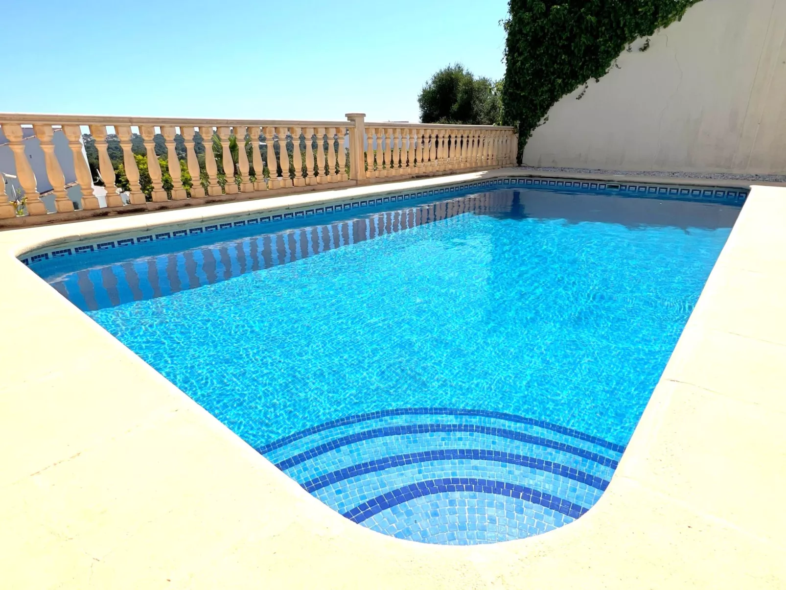 Huis. 24 huizen in de woning. In de wijk Monte Javea, 5 km van het centrum van Jávea-Arenal, tegen een helling, 3 km van zee. Voor alleengebruik: terrein (omheind) met planten en bomen, openluchtzwembad (8 x 4 m, 120 - 220 cm diepte, seizoensgebonden beschikbaarheid: 01.Jan. - 31.Dec.). Openbare parkeerplaatsen in de straat. Winkel 2.5 km, restaurant 1 km, bushalte "Calablanca" 3.6 km, zandstrand "Arenal" 5 km kiezelstrand "Granadella" 3 km. Tennis 1 km.