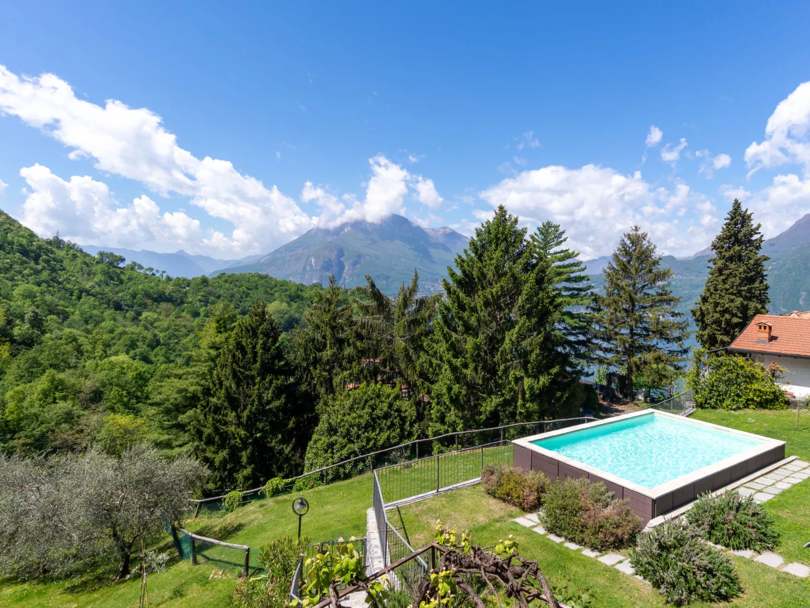 Woonboerderij "Meri", 450 m boven zeeniveau. Beneden Regoledo, in de wijk Cestaglia, 4.6 km van het centrum van Varenna, 27 km van het centrum van Lecco, 58 km van het centrum van Como, tegen een helling, 5.7 km van het meer, aan een doodlopende weg, te midden van groen. Voor alleengebruik: terrein 400 m2 (omheind) met planten en bomen, weide, openluchtzwembad (verhoogd) (7 x 4 m, 130 cm diepte, seizoensgebonden beschikbaarheid: 01.Apr. - 31.Okt.) met zout-elektrolyse. Buitendouche, prieel, tuinmeubelen, onderhoud zwembad door de eigenaar/tuinman. 4.6 km lange smalle toegangsweg (bergweg). Parkeerplaats (voor 2 auto's) op het terrein. Winkel 4.6 km, supermarkt 7.7 km, bushalte 1.7 km, treinstation "Varenna" 3.7 km, kiezelstrand "Lido di Gittana" 5.7 km (klein), park "Lido di Varenna" 4 km. Jachthaven 6 km, golfterrein (18 holes) 48 km. Eigenaar maakt gebruik van de ruimtes in het huis.