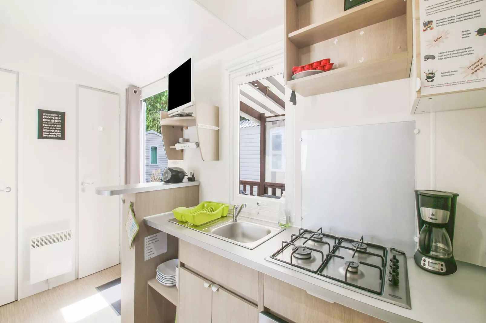 Deze stacaravan ligt op slechts 1 km van de supermarkt Super U en op 2 km van het zandstrand Plage des Demoiselles, dicht bij alle dagelijkse benodigdheden en strandplezier. Voor spannende dagtochten kunt u nabijgelegen attracties verkennen, zoals Les Sables-d'Olonne, Puy du Fou, Nantes, Pornic en La Roche-sur-Yon – allemaal binnen een uur rijden te bereiken.