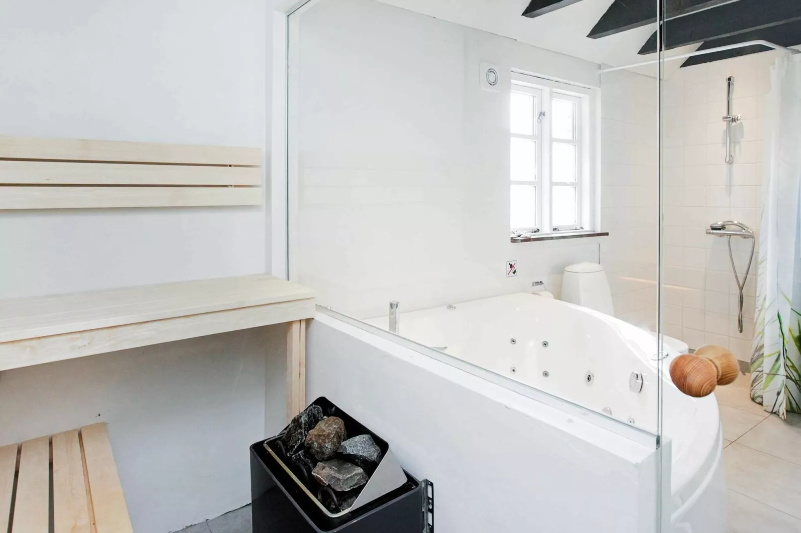 Reetgedeckte Ferienhausidylle in naturschöner Umgebung am Thorup Strand. Das Haus wurde 2015 komplett saniert, dabei entstand ein modernes Ambiente mit gewissen, nostalgischen Elementen wie einige alte, eingezogene Dachbalken. Die Einrichtung im Küchen-/Wohnbereich ist eher schlicht und modern. Das attraktive Badezimmer mit Fußbodenheizung stellt auch einen Whirlpool zur Verfügung, zudem bietet es Zugang zur Sauna. Im Parterre befindet sich zudem ein Schlafzimmer. Die beiden Schlafzimmer oben unter der Dachschräge sind klein, eng und haben keine Zimmertür. Die Einrichtung des Hauses ist durchgehend hell und ansprechend. Der Lichteinfall im Haus wurde optimal genutzt, um ein besonderes Wohnambiente zu erzeugen. Die insgesamt etwa 40 m² große, offene Terrassenfläche erstreckt sich Richtung Osten, Süden und Westen und ist von der Küche aus zugänglich. Das von Bäumen und Büschen umgebene Naturgrundstück bietet auch eine Rasenfläche für Spiel und Spaß der Kinder, für die etwas abseits sogar zwei Fußballtore aufgestellt sind. Außerdem Schaukelgerüst auf dem Grundstück. Nur etwa 350 m weiter liegt der Badestrand. In Thorup wird noch heute ab Strandufer gefischt, wo die Fischer nach dem Törn dann mit ihren Booten anlanden, um den frischen Fang direkt ab Kutter zu verkaufen.