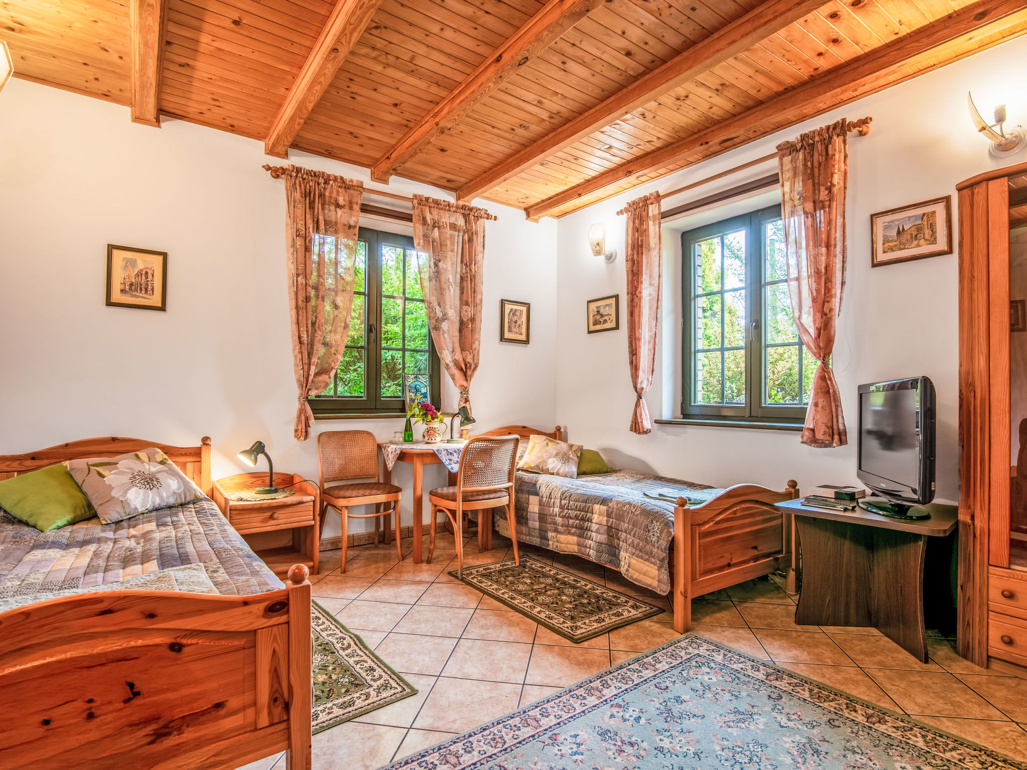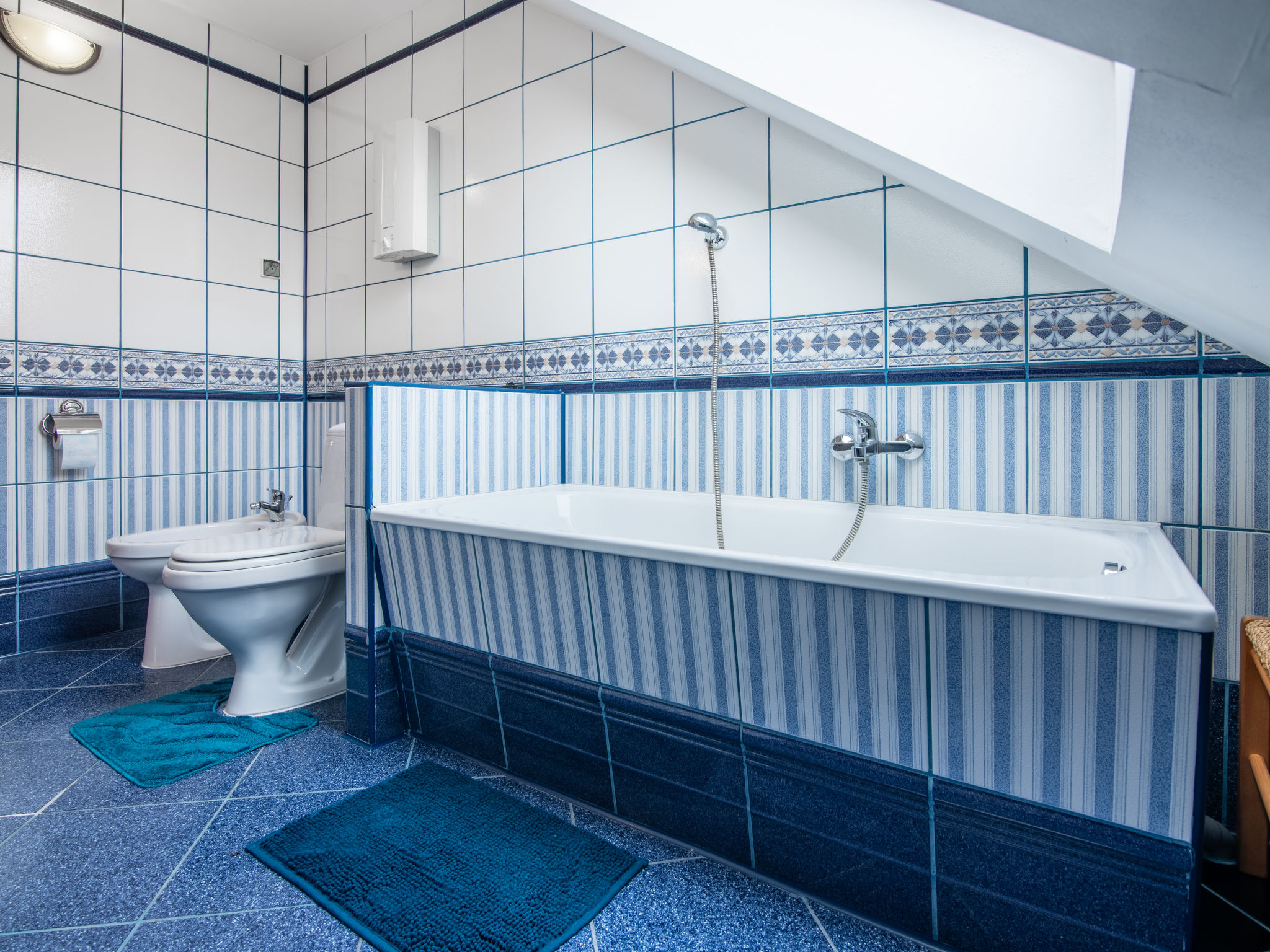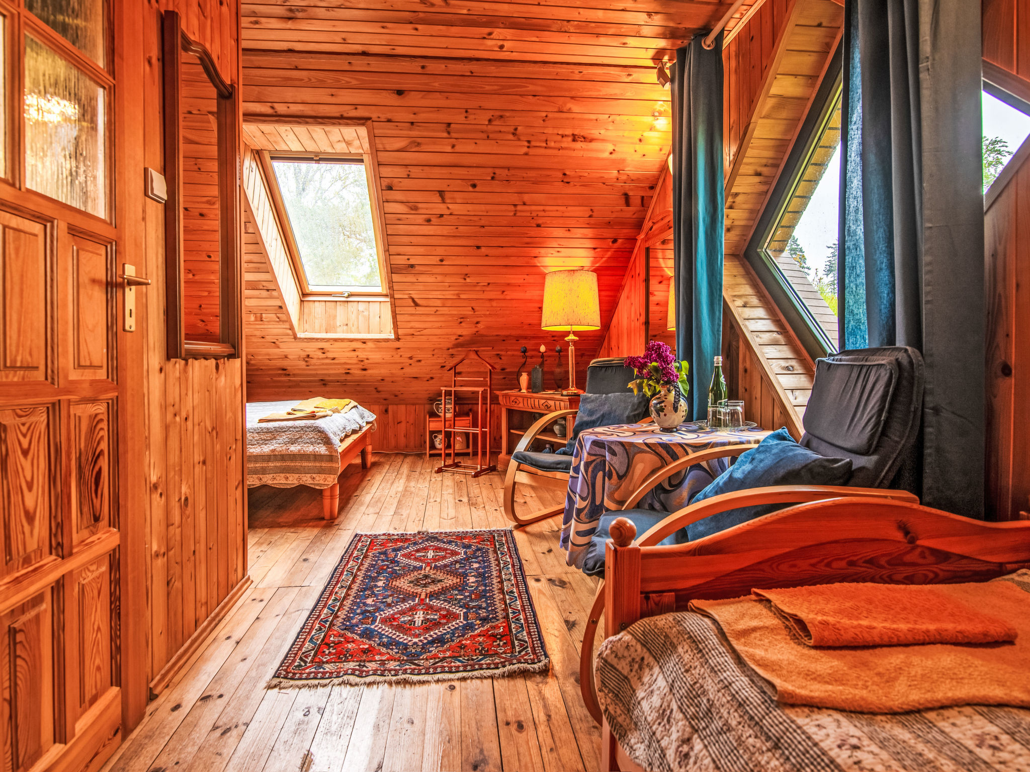 Huis 5-kamers 168 m2 op 2 verdiepingen. Comfortabel en mooi ingericht: woon-/eetkamer 21 m2 met panoramavenster met open haard en Sat-TV. Uitgang naar de tuin, naar het terras. Open galerij met afgeschuinde daken met 3 bedden (90 cm), bad/bidet/WC. 1 kamer 17 m2 met 1 2-pers bed (160 cm), douche/bidet/WC en Sat-TV. 1 kamer 14 m2 met 2 bedden (90 cm), zitbad/bidet/WC en Sat-TV. Keuken (4-pits kookplaat, oven, magnetron, elektrische koffiemachine). Bovenverdieping: hal met afgeschuinde daken met Sat-TV. 1 kamer 18 m2, met afgeschuinde daken met 1 bed (90 cm), 1 2-pers bed (160 cm), douche/bidet/WC. Terras, prieel. Terrasmeubelen, barbecue. Mooi uitzicht op de tuin. Ter beschikking: wasmachine, kinderstoel, kinderbed tot 3 jaar. Parkeerplaats bij het huis. Geschikt voor families. Maximaal 1 huisdier/hond toegestaan. In plaats van een afgesloten slaapkamer bevinden sommige slaapgedeeltes zich in een open ruimte (galerij, nis, etc.).