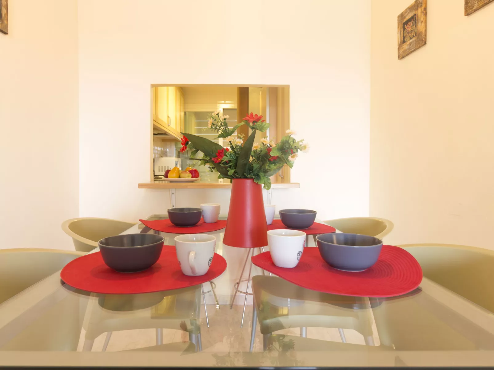 Appartement 3-kamers 65 m2, op de bovenste verdieping. Comfortabel en mooi ingericht: woon-/eetkamer met 1 2-pers divanbed en Digitale TV. Uitgang naar het balkon. 1 kamer met 1 2-pers bed en bad/WC. 1 kamer met 1 bed en 1 x 2 stapelbedden. Keuken (afwasmachine, 4 keramische glas kookplaten, magnetron, elektrische koffiemachine) met doorgeefluik. Douche/WC. Air-conditioning, boiler (80 liter). Geen verwarmingsmogelijkheid. Balkonmeubilair, barbecue. Panoramazicht op zee en het landschap. Ter beschikking: wasmachine. Parkeerplaats nr. 1. Geschikt voor families. HUTT014371 // Reg. Nr.: ESFCNT00004303100021712400000000000000000000000000007